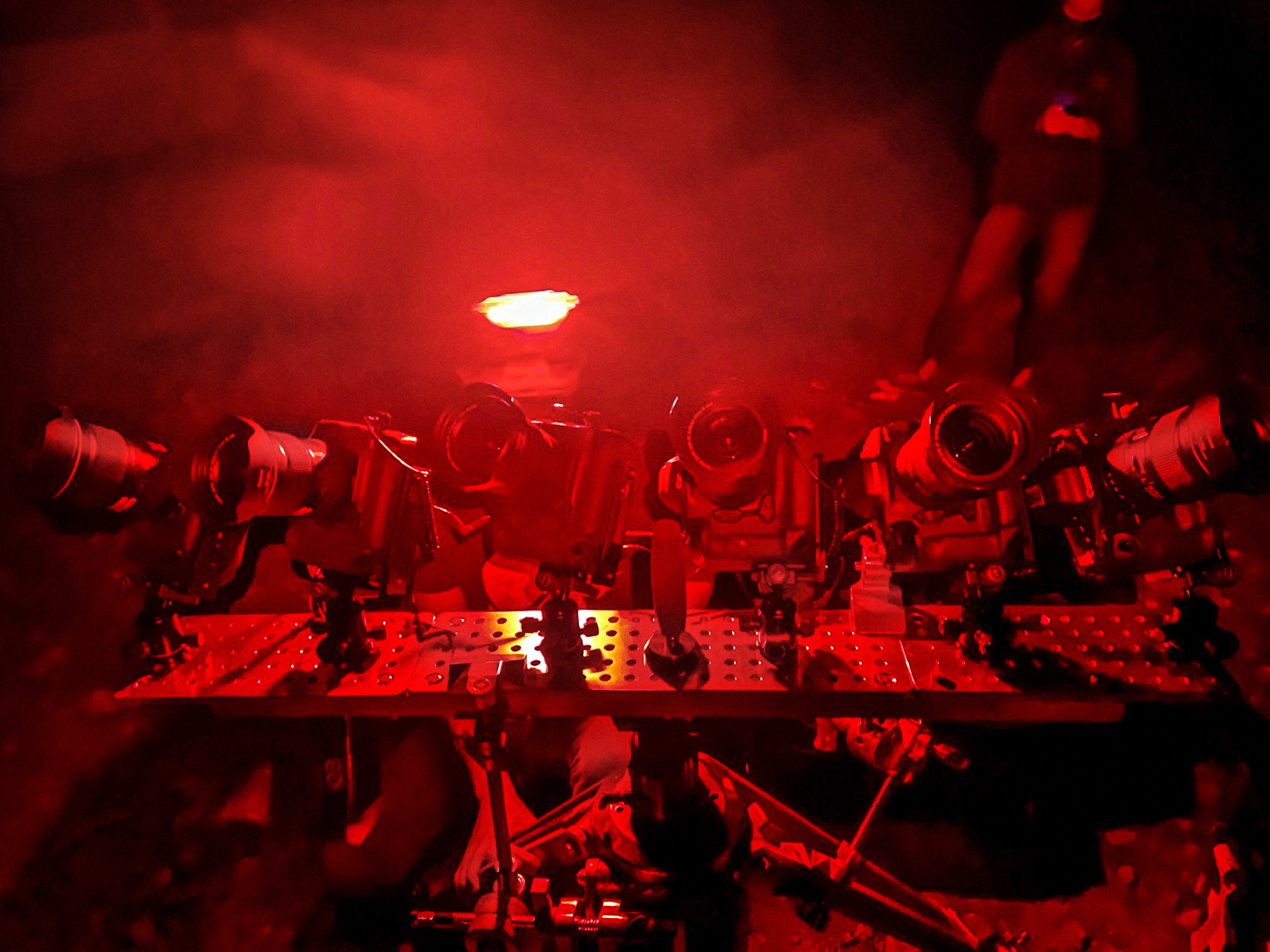 But, even after calculating the perfect night-time position, Snipes still had to figure out how to photograph illuminated bodies falling from a height of more than 3,000m with only a few minutes on the clock. The set-up used a total of nine cameras, including six Canon EOS-1D X Mark III DSLRs that Snipes mounted to a custom-built base, allowing him to shoot a 180° view.