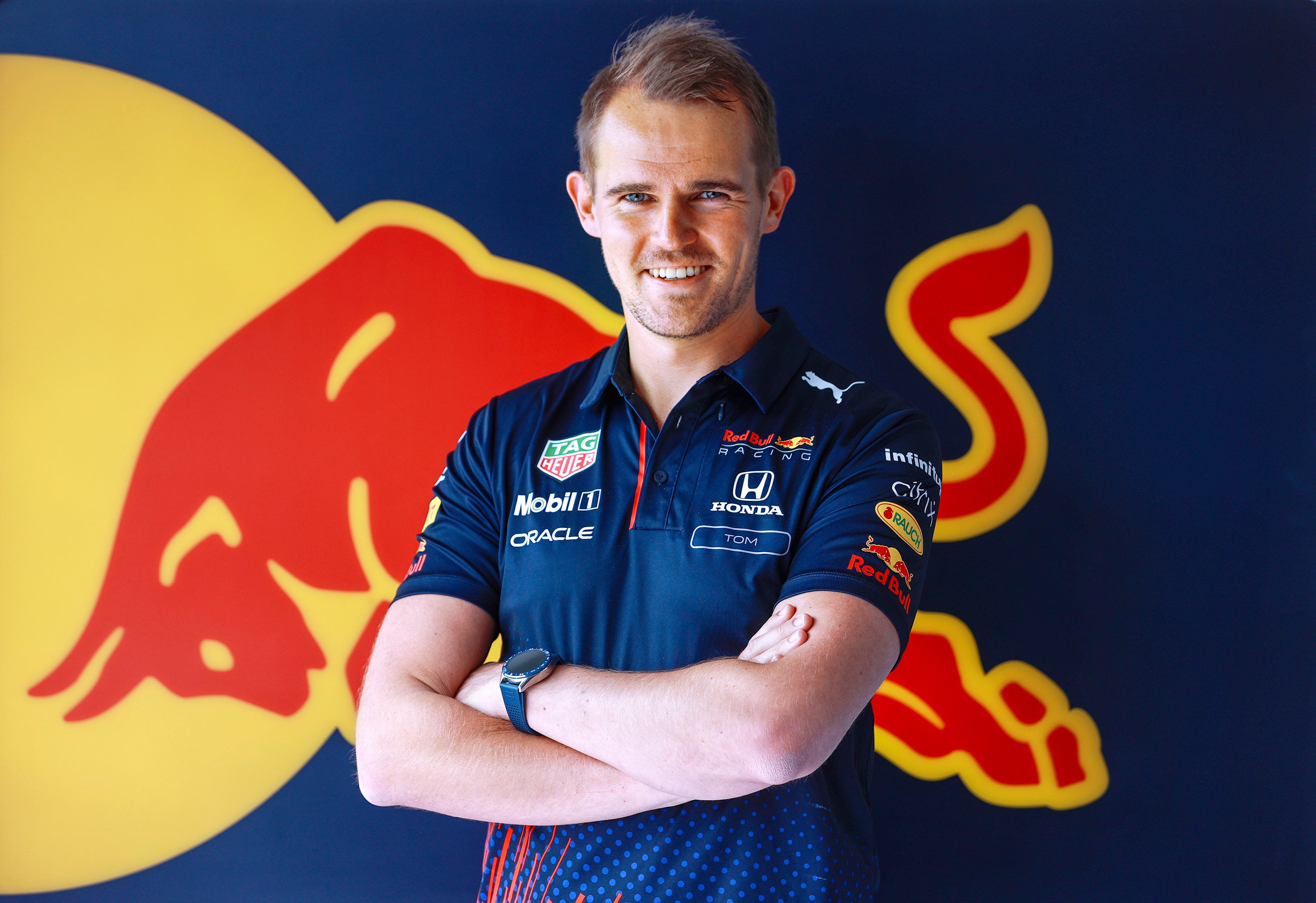 What’s the difference between a Race and a Performance Engineer? The Race Engineer is responsible for the overview of his or her driver’s whole weekend, looking at the big picture of run plans, working with the strategists and decision-making on the pit wall during the race, while the Performance Engineer is there to sift through the data and the driver’s feedback in order to build the best race car for the conditions. On Max’s crew that job falls to new boy Tom Hart. Until this year Max’s Performance Engineer was Hugh Bird who has now moved to the other side of the garage to work as Sergio Pérez’s Race Engineer. Hart has stepped into the role on Max’s side of the garage.