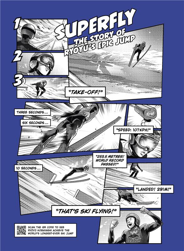 “Ryōyū is on the in-run,” comes the message. “3, 2, 1, take-off!” Kobayashi emerges over the crest of the hill, his straightened form craned forward like an arrow, skis in a perfect V. Eight seconds pass and still he’s flying, past the official world-record marker, nine seconds, 10… He lands smoothly. “Distance: 291 metres.” Kobayashi has flown almost 15-per-cent further than any jumper in history.