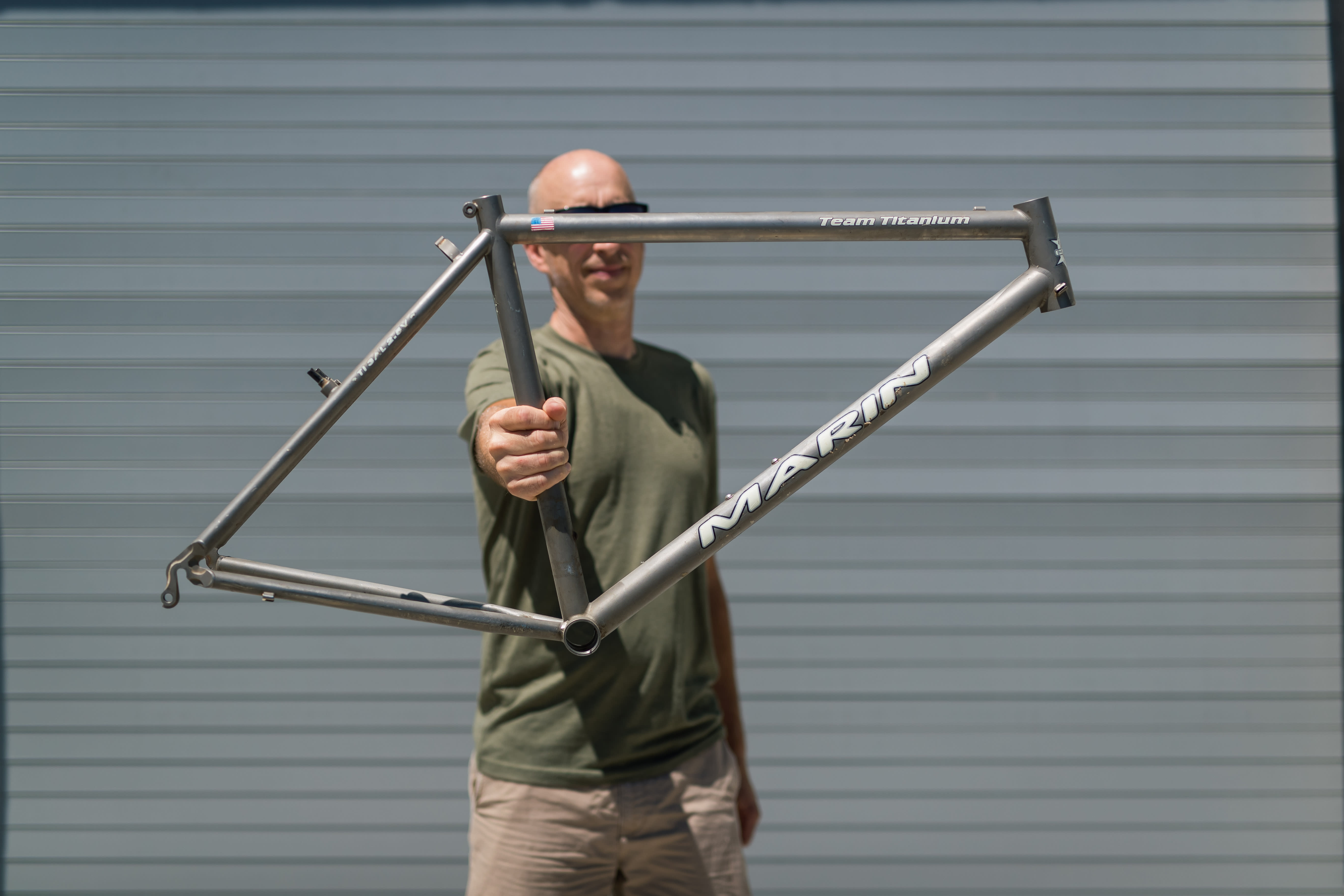 In Petaluma, which is just outside the County itself, we are introduced to the company’s headquarters, which is a roomy, light-filled and unassuming building in a quiet corner of the town. We are greeted by a small gang of happy office dogs, staffers’ pets are welcome here, and take a look through the entrance hall’s permanent exhibition of iconic bikes. The walls here literally tell the story of Marin: there’s the Madrone Trail, the first bike Marin produced; the Team Titanium, the bike that recalibrated Ti bike pricing and was piloted by National Champion Joe Murray; the Ti FRS (which means ‘Front Rear Suspension’); some of Marin’s first city bikes; and a modern-era Wolf Ridge, a bike that made a big statement upon its launch thanks to its distinctive suspension system.