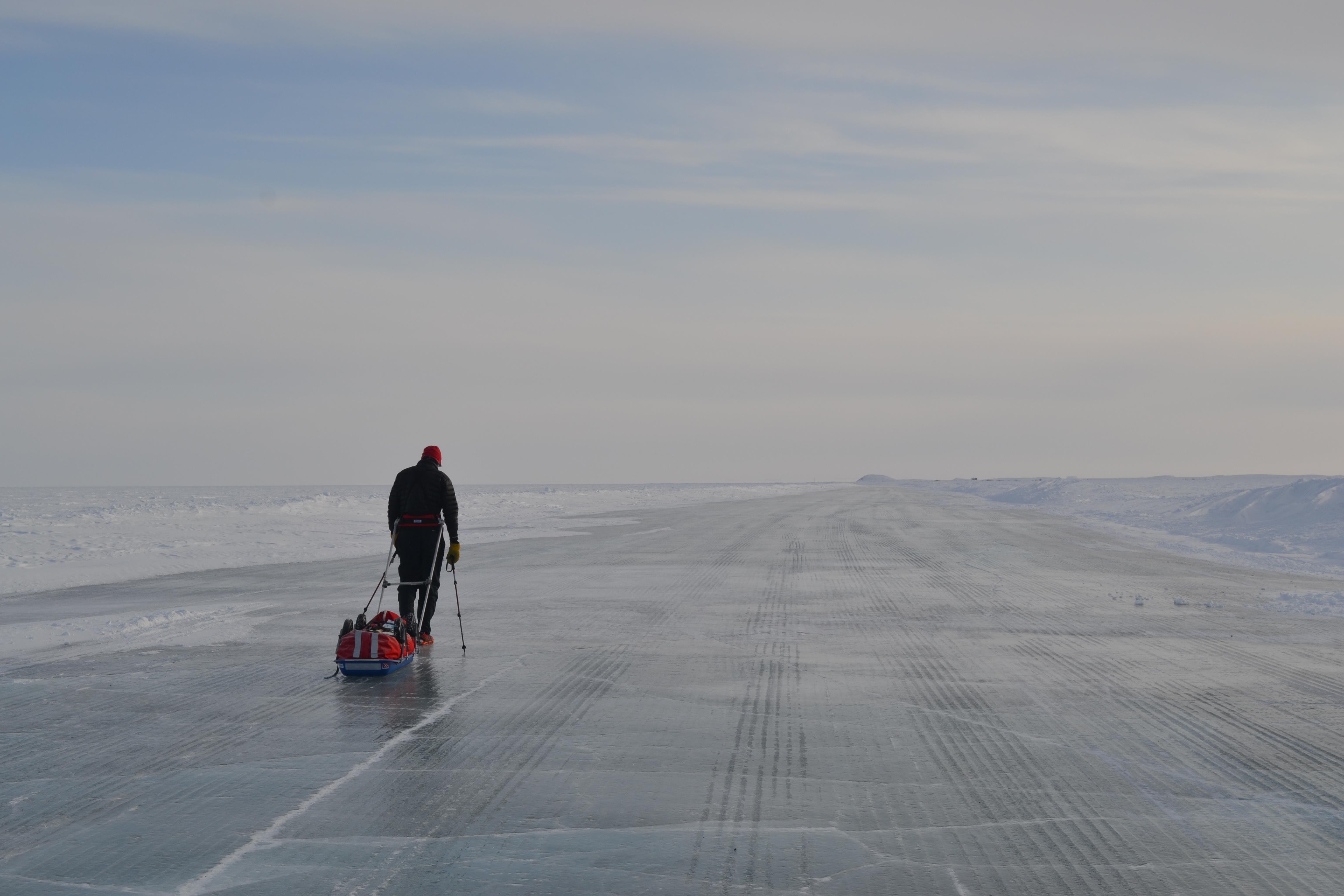 It starts from the Eagle Plains hotel on the Klondike Highway, pushes across the Arctic Circle to the Arctic Ocean, and runners do this all while dragging their supplies in a sled behind them.