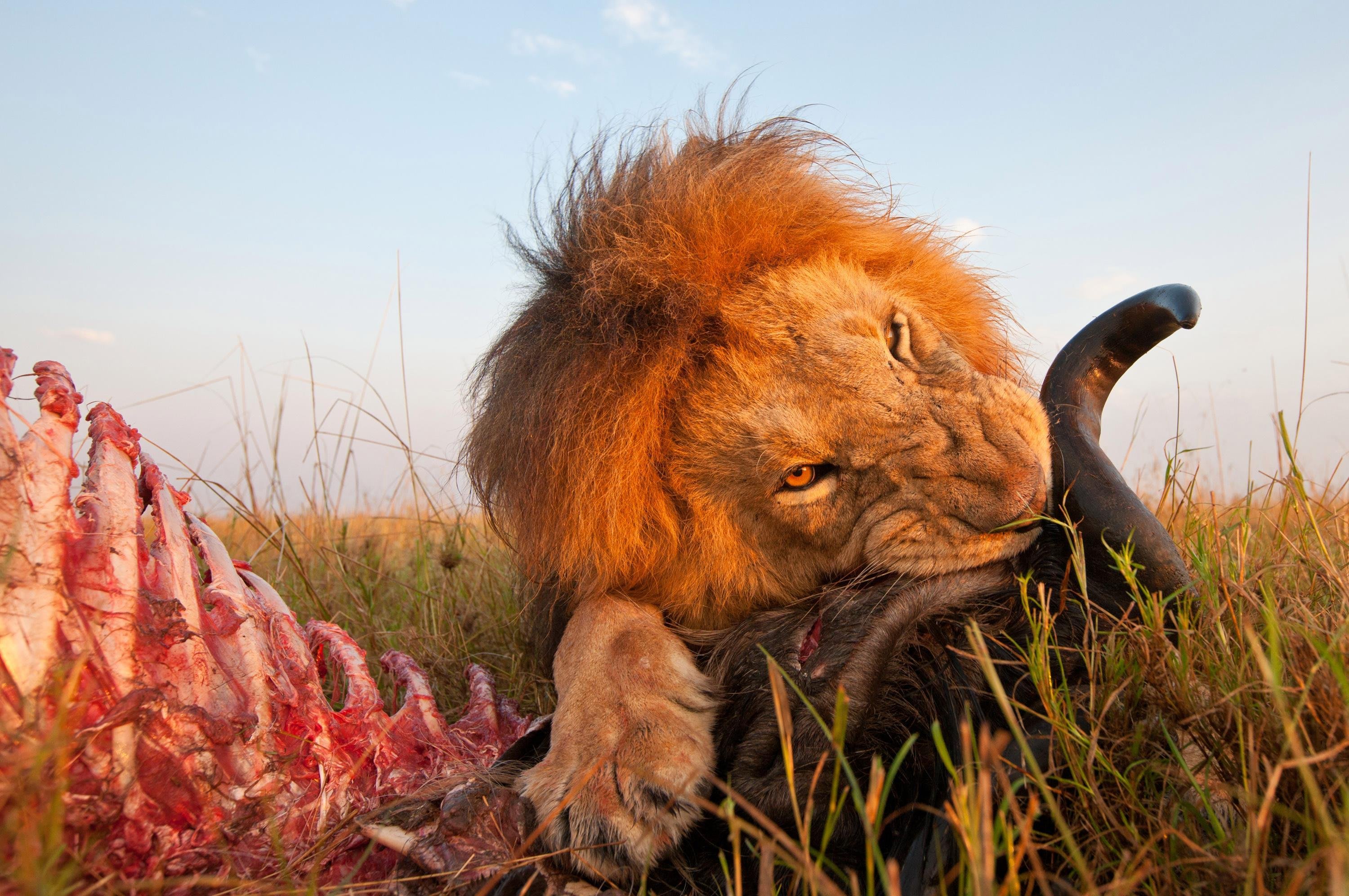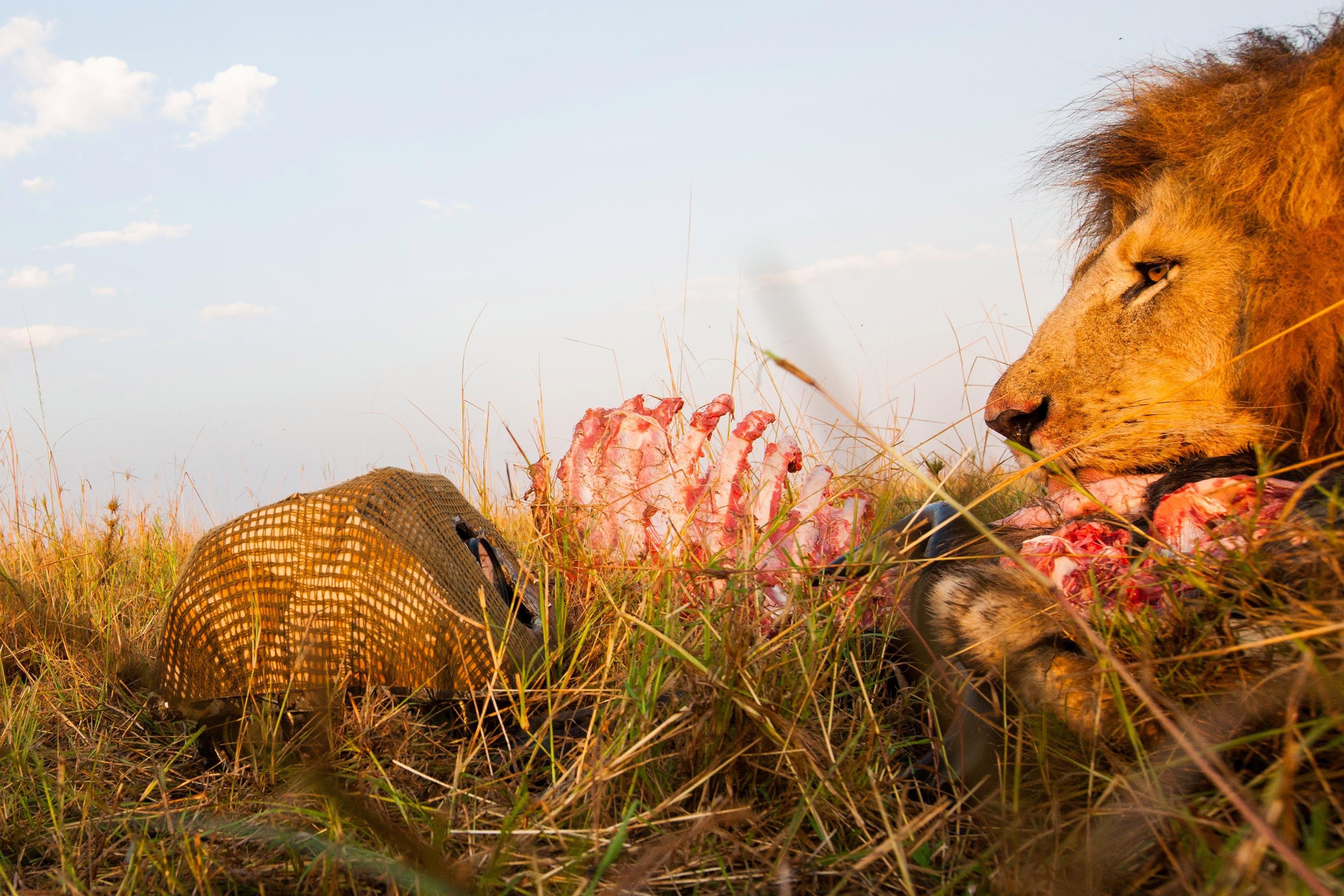 Ακριβώς όπως ο φωτογράφος που είδαμε πιο πάνω, και ο William Burrard-Lucas χρησιμοποιεί τηλεκατευθυνόμενα buggies για να πάει την κάμερα σε μέρη που δεν θέλει να πάει ο ίδιος - οπως για παράδειγμα δίπλα σε αυτό το λιοντάρι που πεινάει. Αν και δεν μπορούμε να το κρύψουμε ίσως είναι πιο ασφαλές όταν ήδη τρώει.