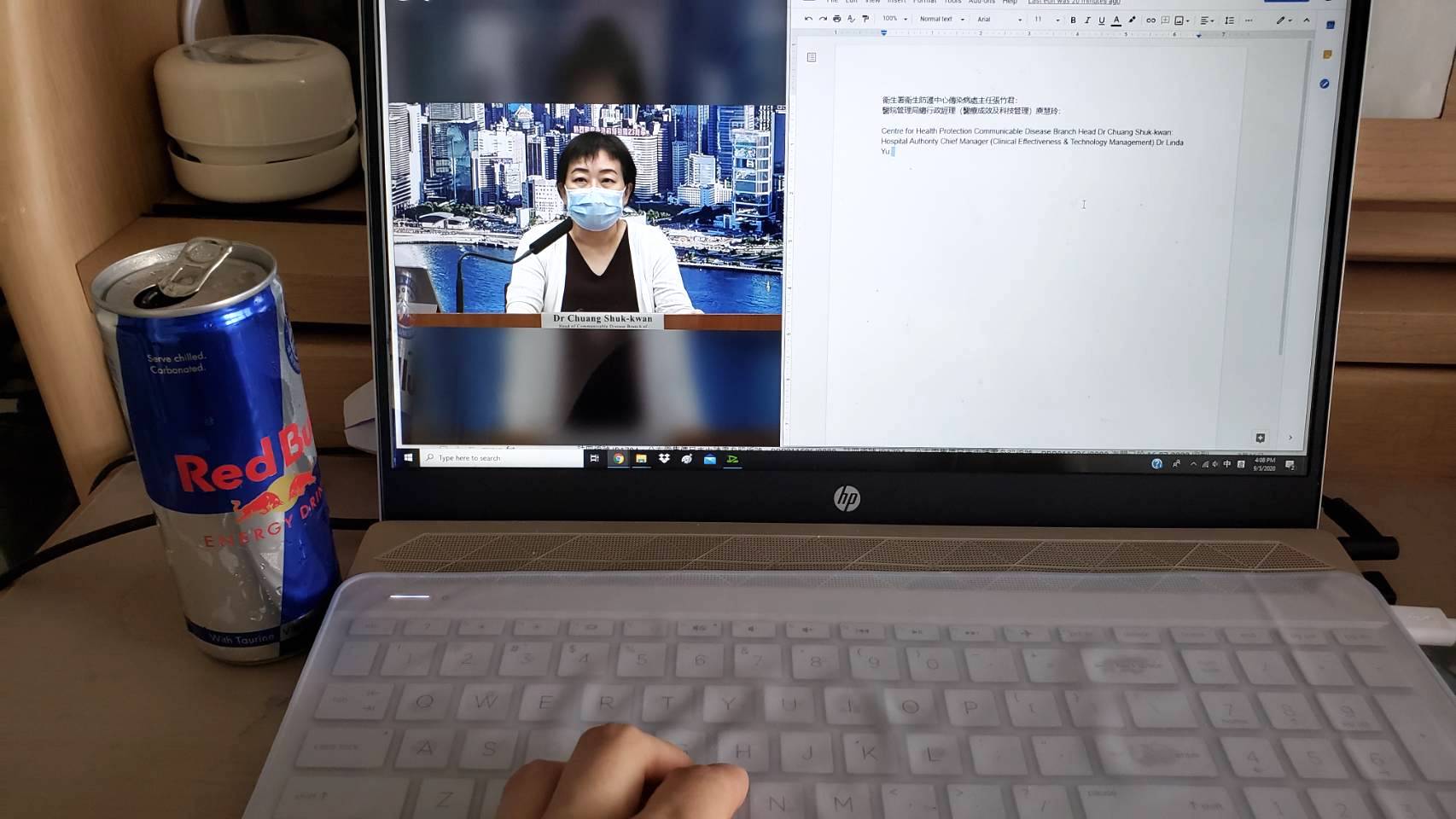 近年記者要兼顧拍攝新聞照片和片段,放上新聞網頁。朗怡曾試過到達一宗案件現場後,要等一整天,為的是拍攝警方在事發單位,取出證物送上車運回警署的照片,所以即使等候期間也必須「打醒十二分精神」。近月不時需要在辦公室聽直播疫情記者會的朗怡,表示會在記者會前喝能量飲品,以確保可以更集中。「每日都會提及很多感染數字、個案編號,作為記者,要報道這些數字必須十分準確,絕對不能出錯。記者會在下午舉行,而且較長和沉悶,有時很難集中,所以之前飲罐Red Bull是必須的。」