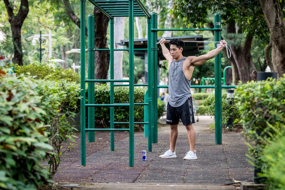 之前健身室常常需要關閉,大家又好像更想在戶外運動,於是街頭健身人氣又再升。「其實在香港都興起了超過十年,不過上年健身室長時間關閉,更加多人接觸街頭健身。街頭健身的好處就是沒限制,最好找到單槓或雙槓,就算沒有,其實有個石壆,有一條橡筋帶,不用啞鈴,不需要太多器材都可以做到,例如倒立這些動作,有空間就可以做到。」和健身室做訓練相比呢?「街頭健身利用自身體重去訓練,健身室就可以調節不同重量,做不同器械。但街頭健身其實也可以增加負重或鍛鍊不同部份肌肉,只要改變動作的角度,作姿勢上的改變,或著上負重背心來增加難度便可。」