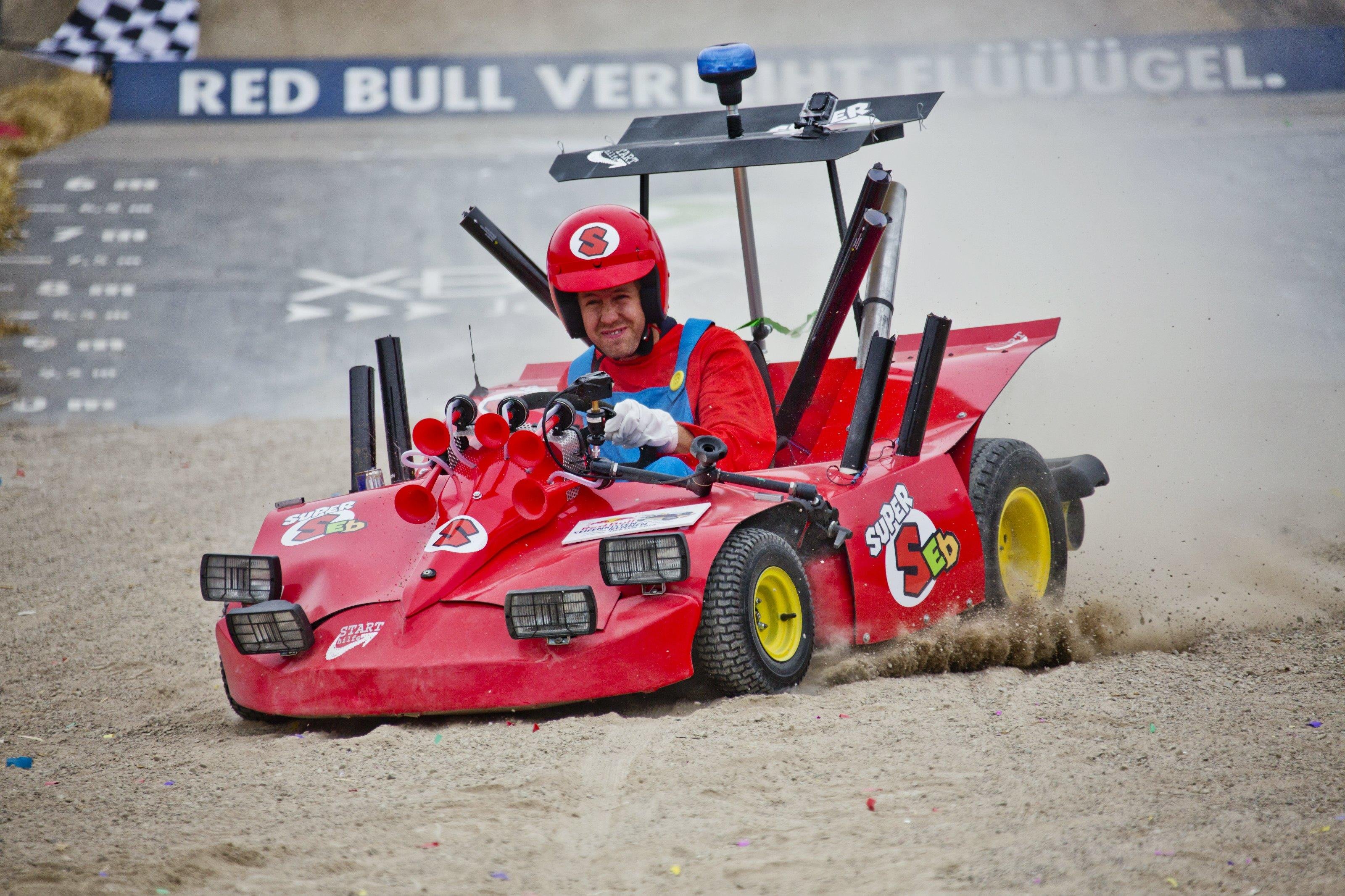 5. A háromszoros Forma-1-es világbajnok Sebastian Vettel egy Mario Kartot irányítva vett részt az egyik futamon.