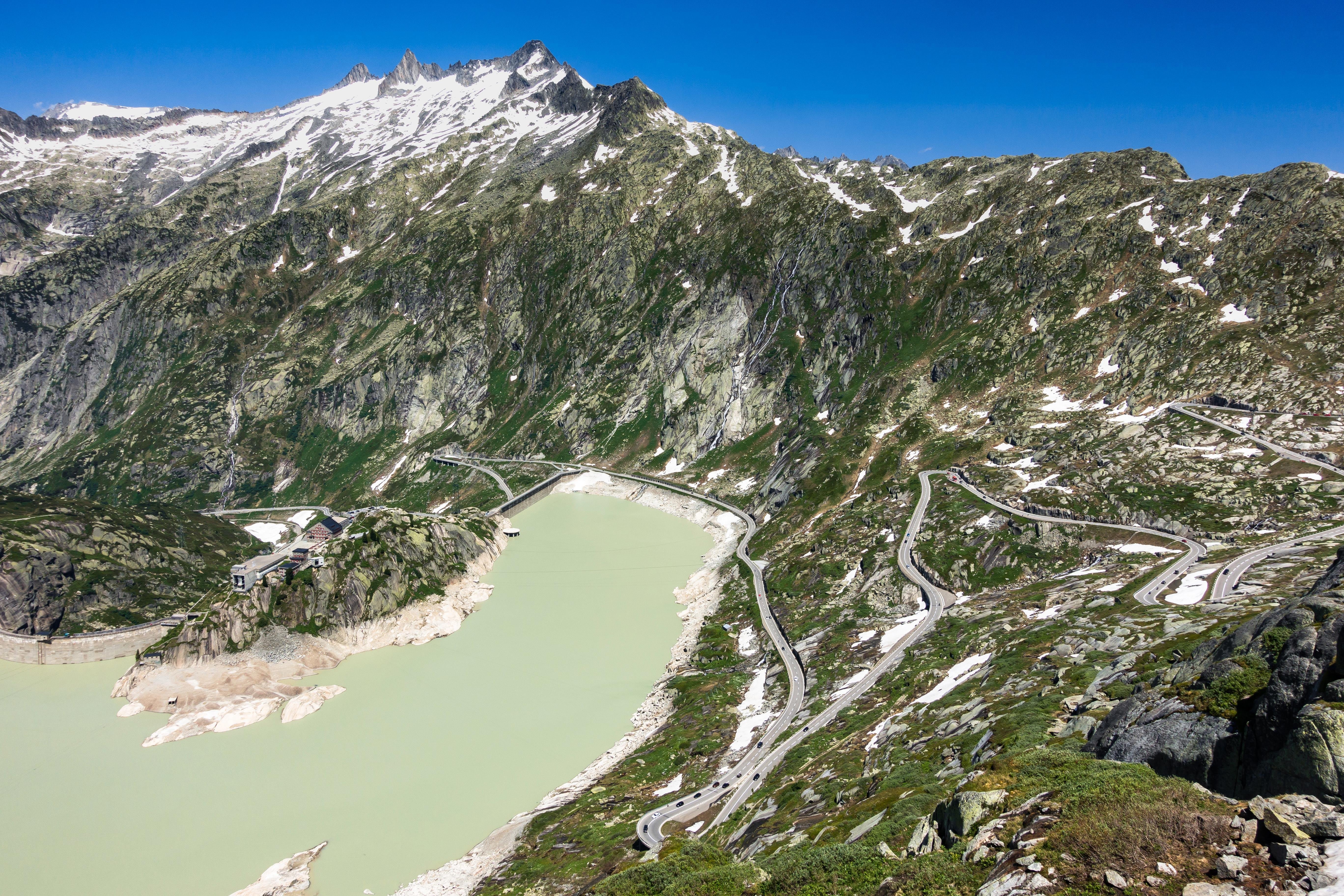 Starting the climb in the small town of Innertkirchen, the road hugs the river Aare and the climbing kicks in in earnest after about 10km. The scenery, of course, is stunning, with granite mountains and two huge reservoirs to take in. Do note, however, that the pass is often closed between October and May due to excessive snowfall.
