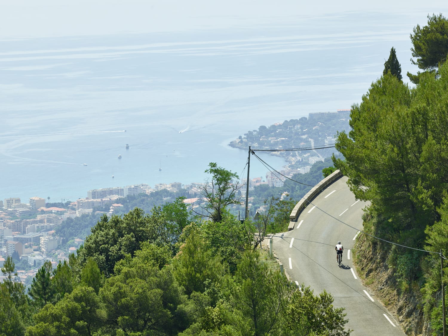 Although the Col de la Madone tops out at only 916m, it punches above its weight in terms of scenic views that overlook the Mediterranean and French Riviera. Rising from a fraction above sea level, it climbs steadily out of Menton and past terraced apartments to quieter, more gentile surroundings and stunning views out to sea until it reaches the town of Saint-Agnes. Here, the road turns sharply left for the final 5km and its surface becomes rough, narrowing to a single carriageway for the final push to the summit. You'll know you're there when you reach the military monument made out of old artillery shells and shrapnel that includes the words 'Battles of men, shards of shells, from now on you are no more than a Madonna of peace'.