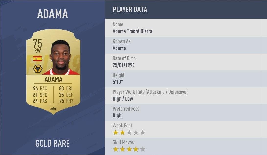 - Adama Traore (RW, 96 Pace, 75 OVR)