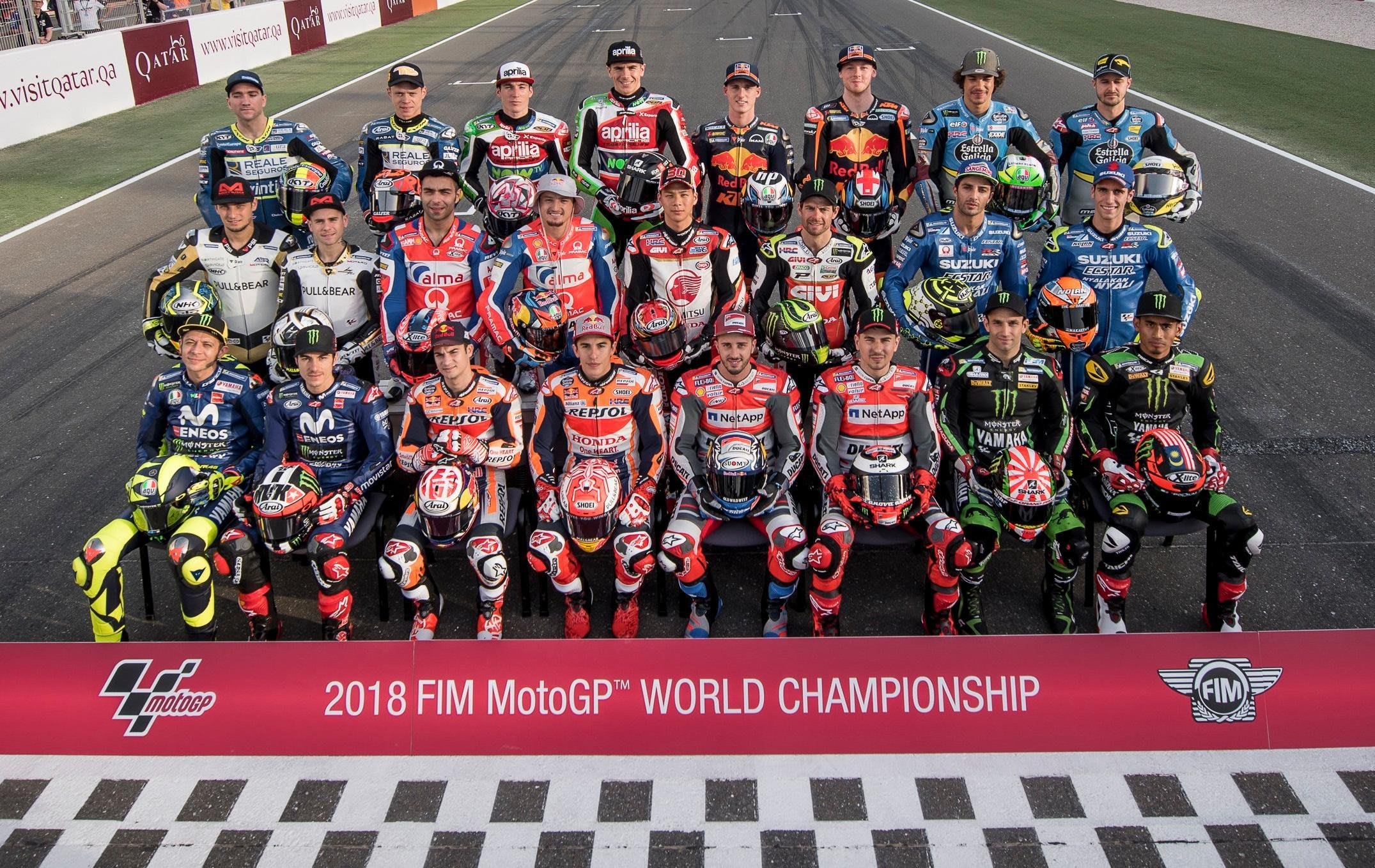 A cast of 24 riders (in their 'school' photo above; nice hat, Jack …) began the 2018 season under lights at Losail in Qatar, and by season's end in Valencia (counting wildcards and injury replacements), 33 riders appeared on the entry list and 32 of them raced (Loris Baz, drafted in as an injury replacement for Pol Espargaro at the Red Bull KTM Factory Racing outfit for Silverstone, never got the chance to race after that GP was washed out). But, with respect to 23 others, we're whittling things down to a top 10 for the season that wrapped up earlier this month.