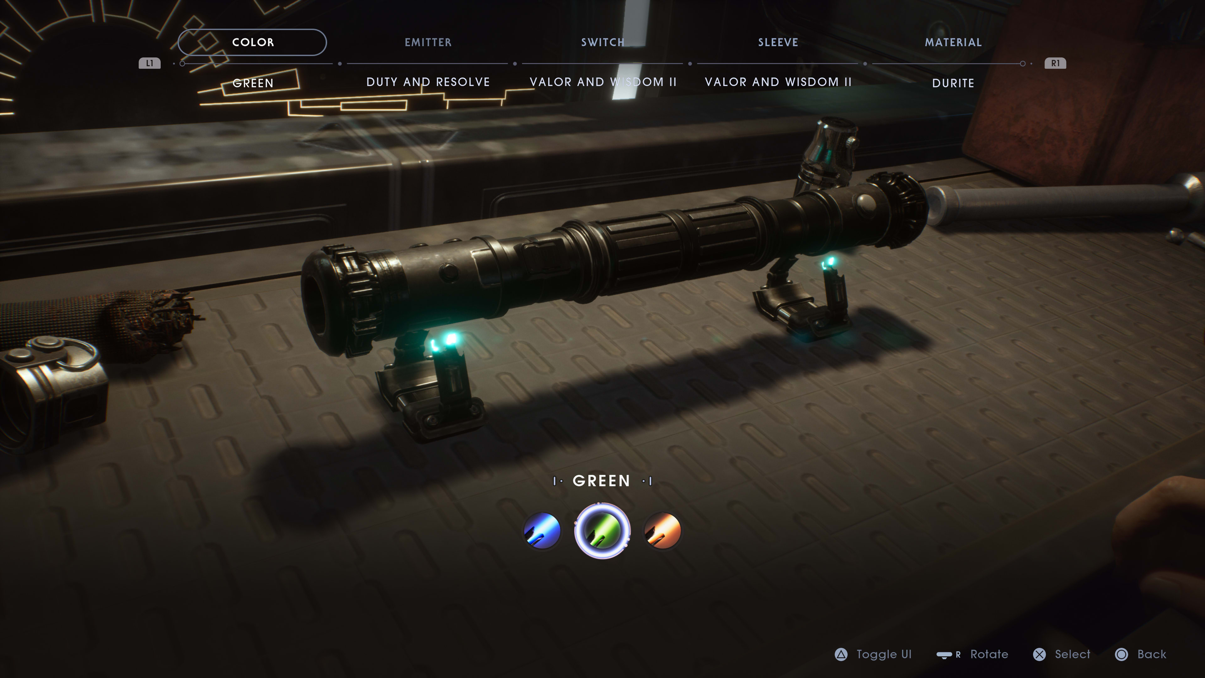 In order to do this, just head back to the ship on any planet, and walk over to the lightsaber customisation bench. Here, you’ll be able to find a complete list of the parts that you have found across the world, and start to assemble your own lightsaber.