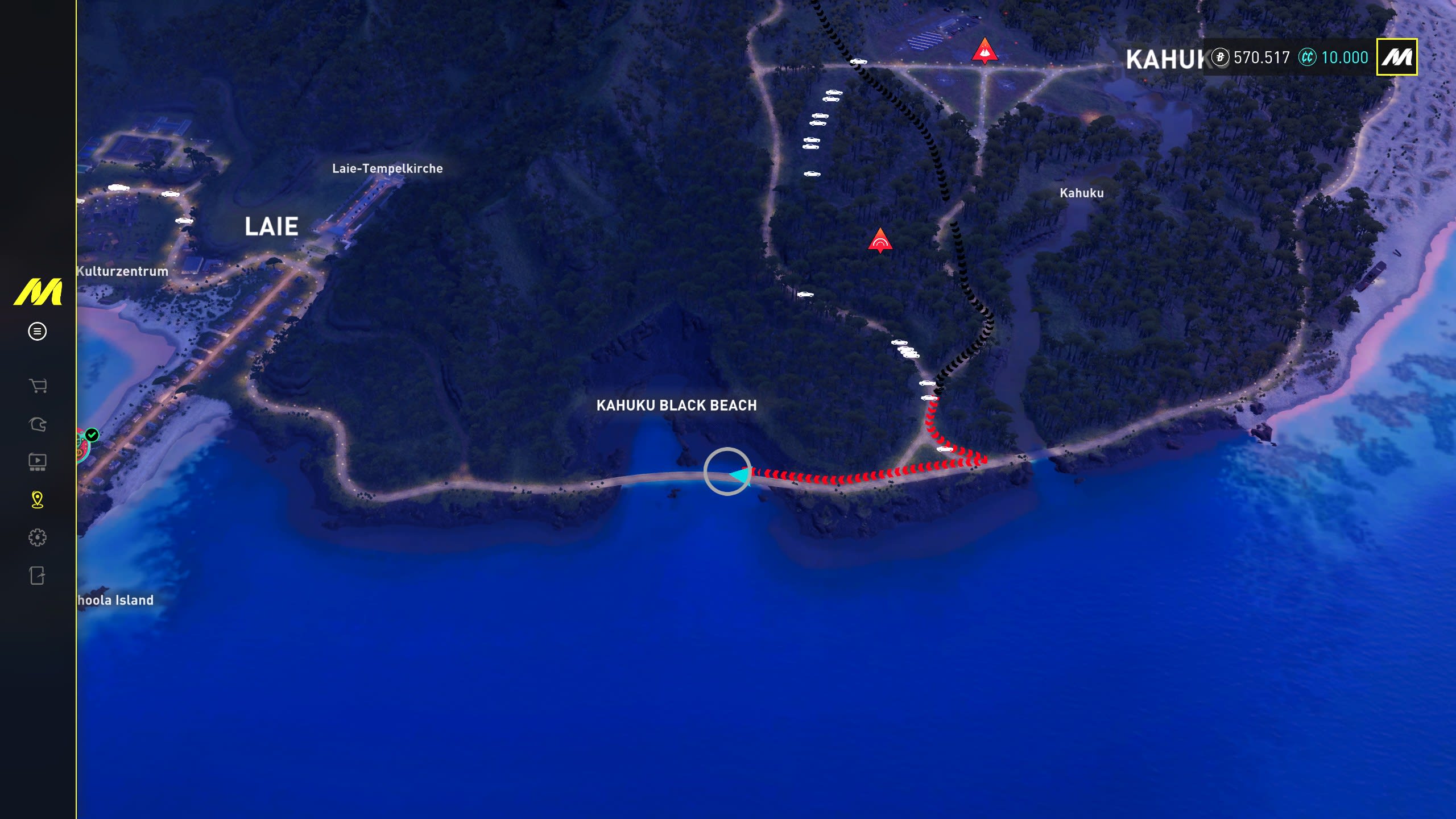 Go wide with an excellent top speed spot in the east of Hawaii. In the Kahuku region, you'll find a long stretch of coastline that crosses a bridge along a black beach in Hawaii.