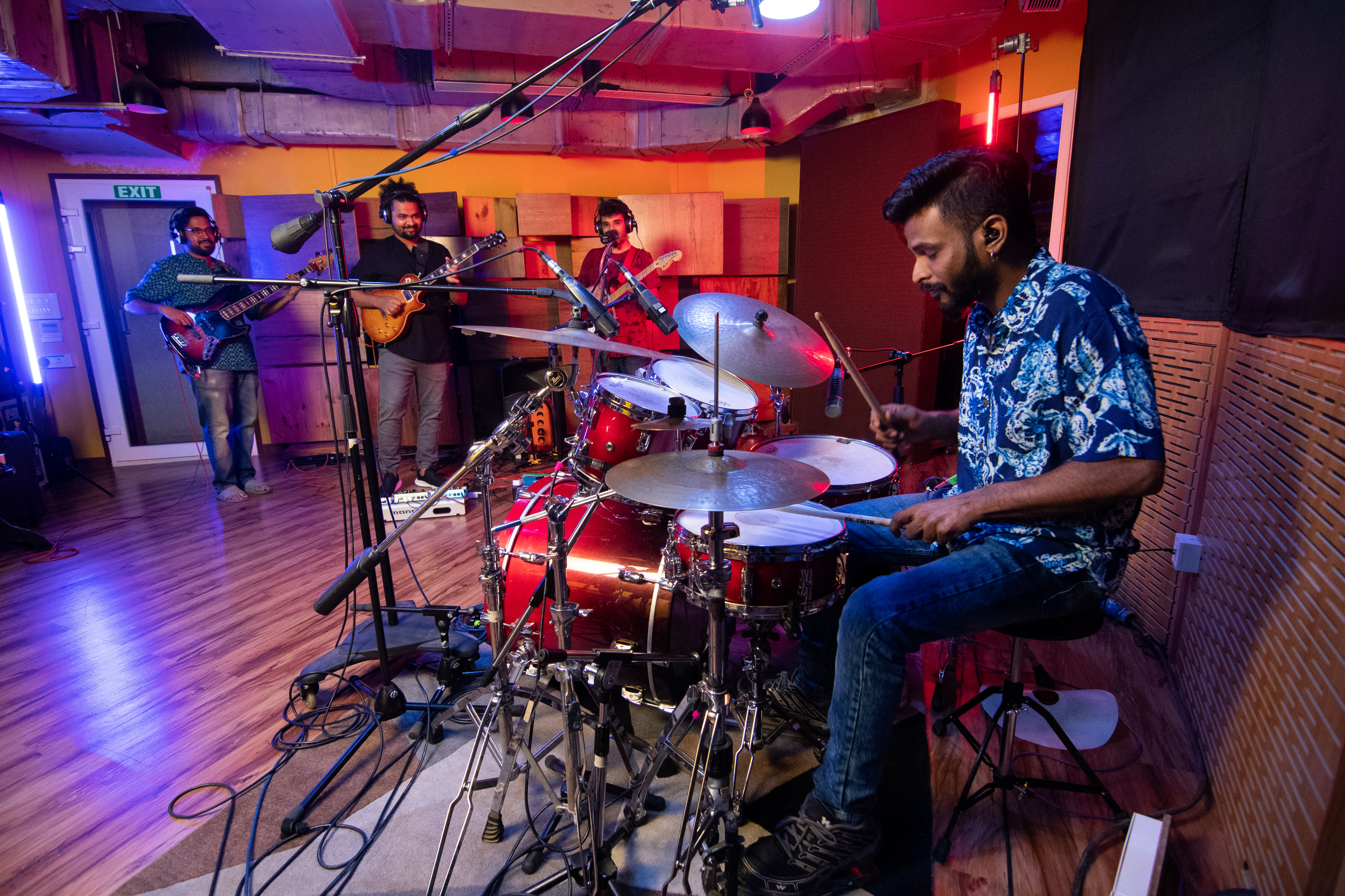 “We’re the outcasts,” says rhythm guitarist Sahib Singh about the Chennai-based quartet that includes lead guitarist and kanjira player Shylu Ravindran, bassist Kashyap Jaishankar and drummer Manu Krishnan, who also plays the sticks for the metal band Escher’s Knot.