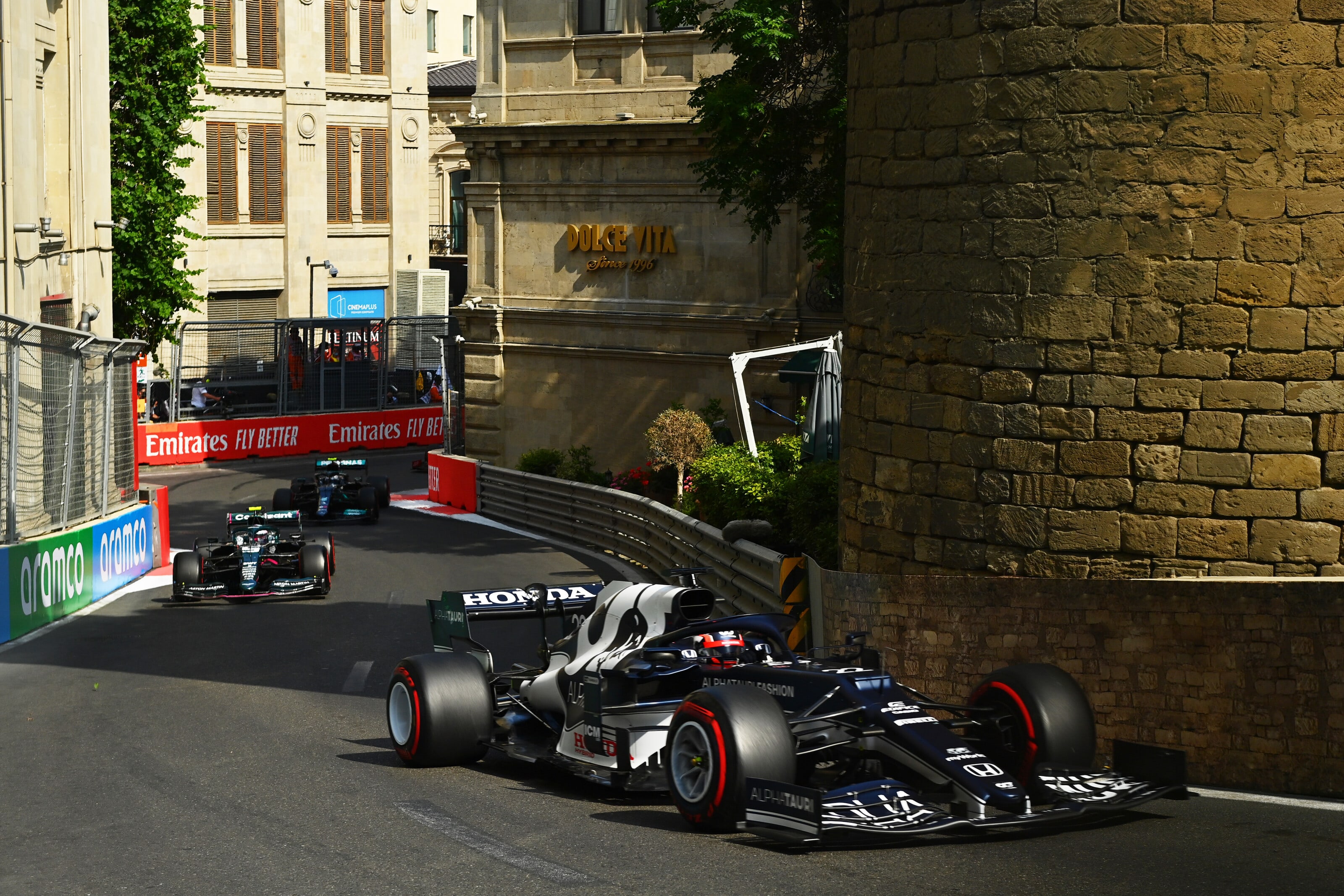 Yuki Tsunoda drives his AlphaTauri through the castle section in 2021