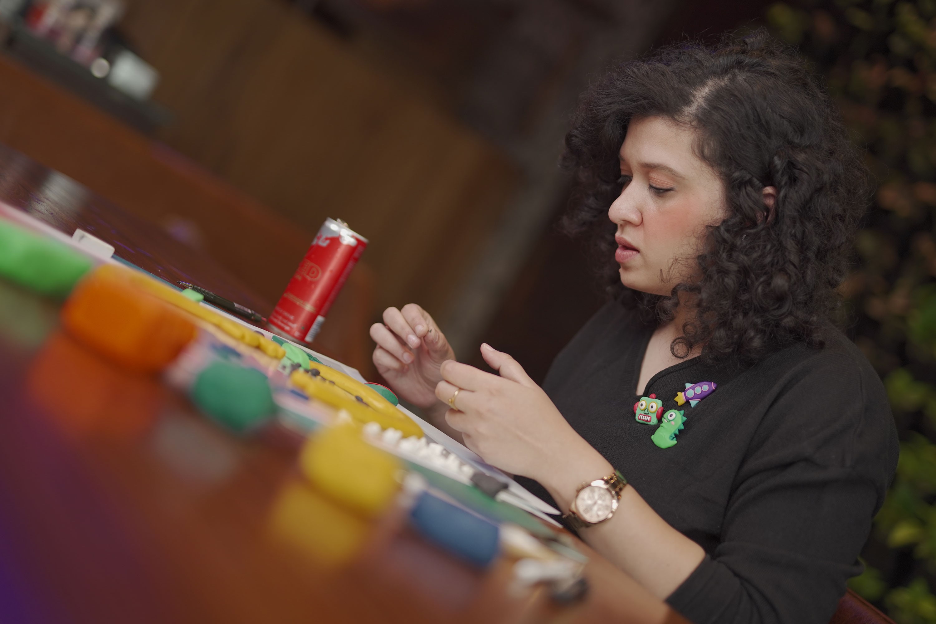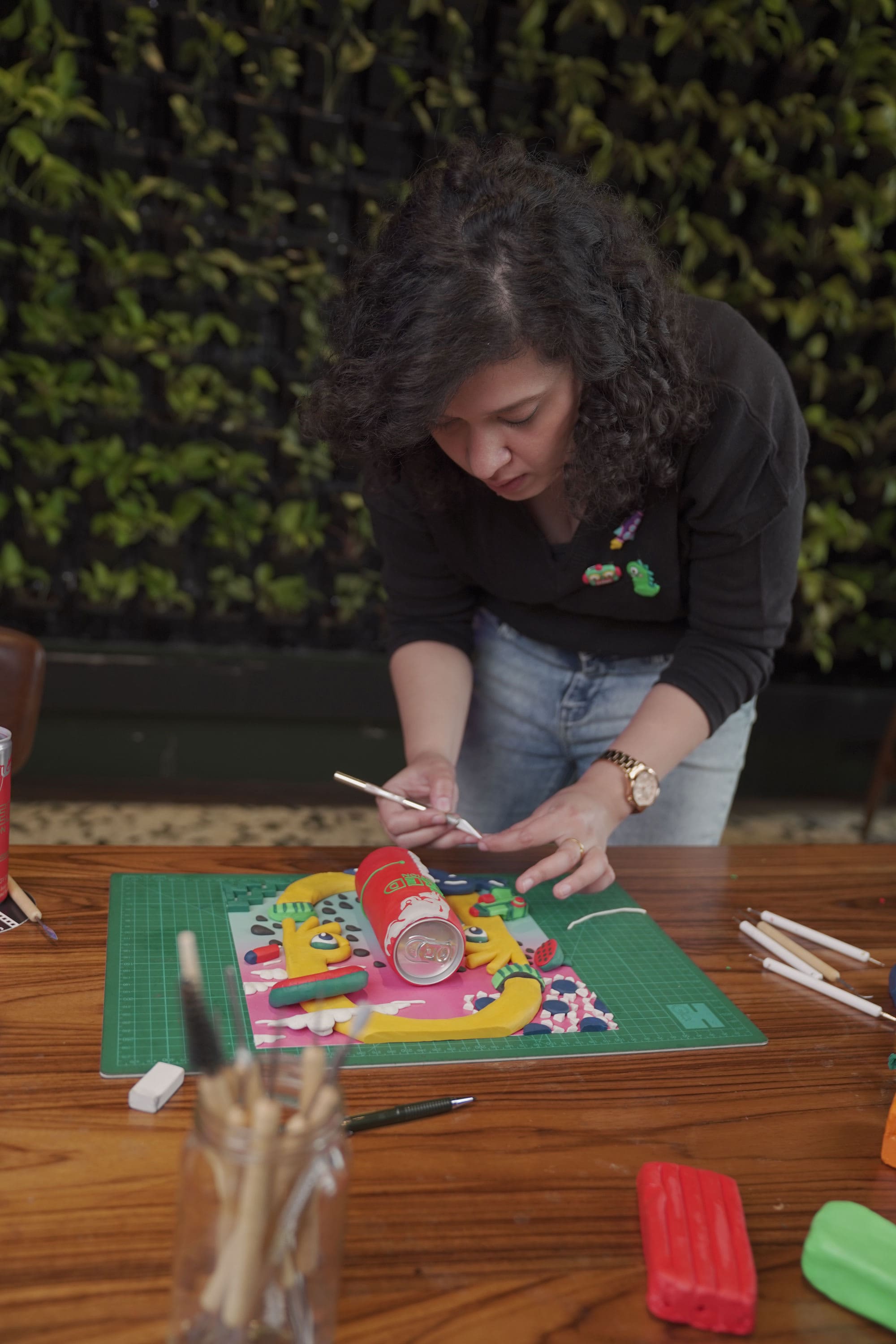 - Plasticine clay: “I use this soft clay because it gives me flexibility, and I like its finish,” she says.