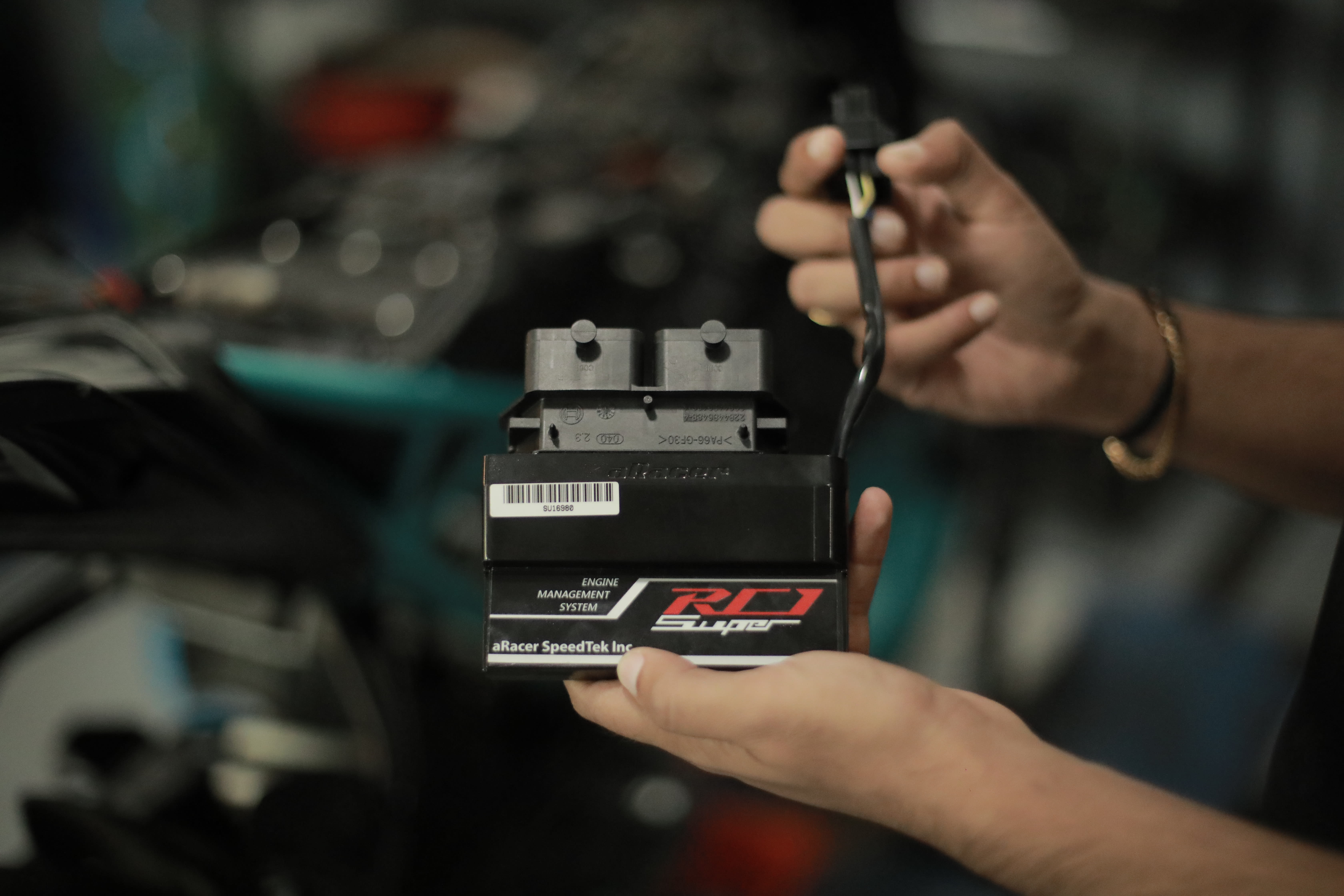 If the engine is the heart of the bike, the Electronic Control Unit (ECU) is its brain. It mainly controls how the fuelling and ignition runs on the bike. The many sensors on the bike send data to the ECU, which in turn transmits signals to specific components for action. The data collected by the ECU allows a tuner to understand the performance and tweak settings to improve the bike’s capabilities.