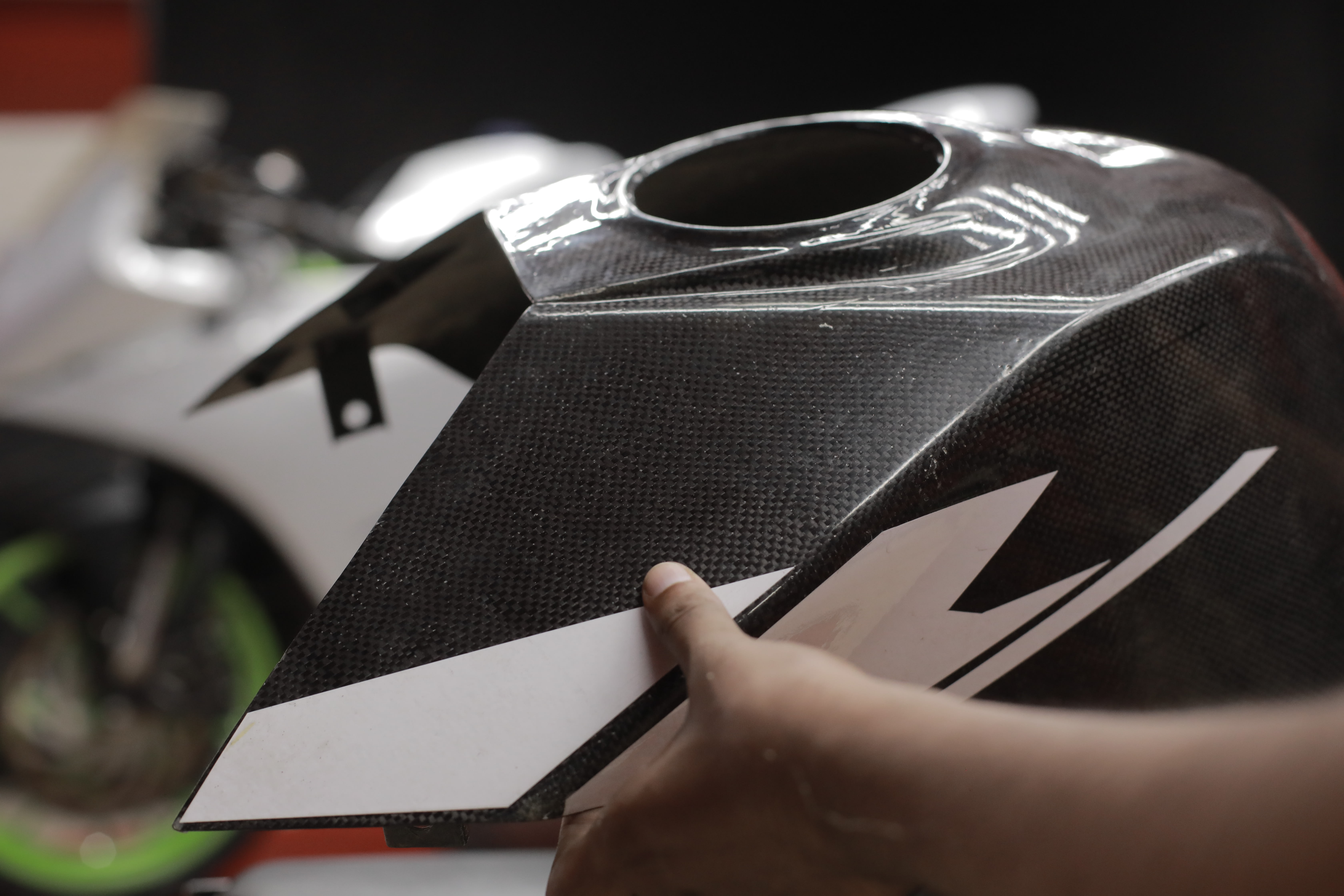 A stock bike is firstly stripped off all unnecessary components like switches, mirrors and indicators to get it ready for racing. The overall weight of the bike can be reduced by creating the fairings and seat using fibre glass, which is much lighter.