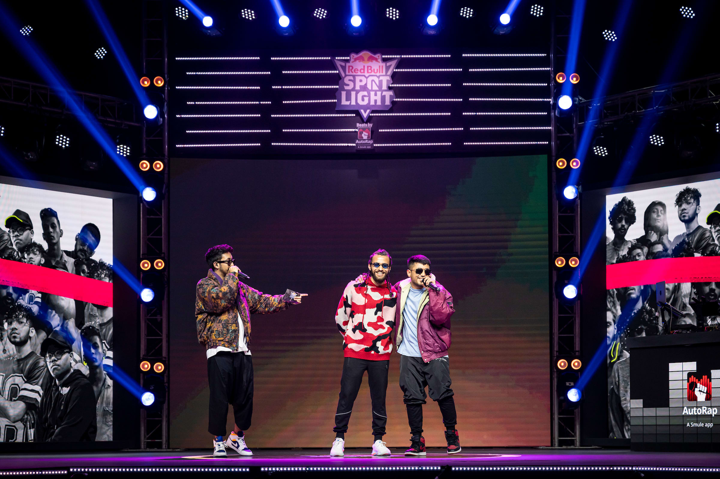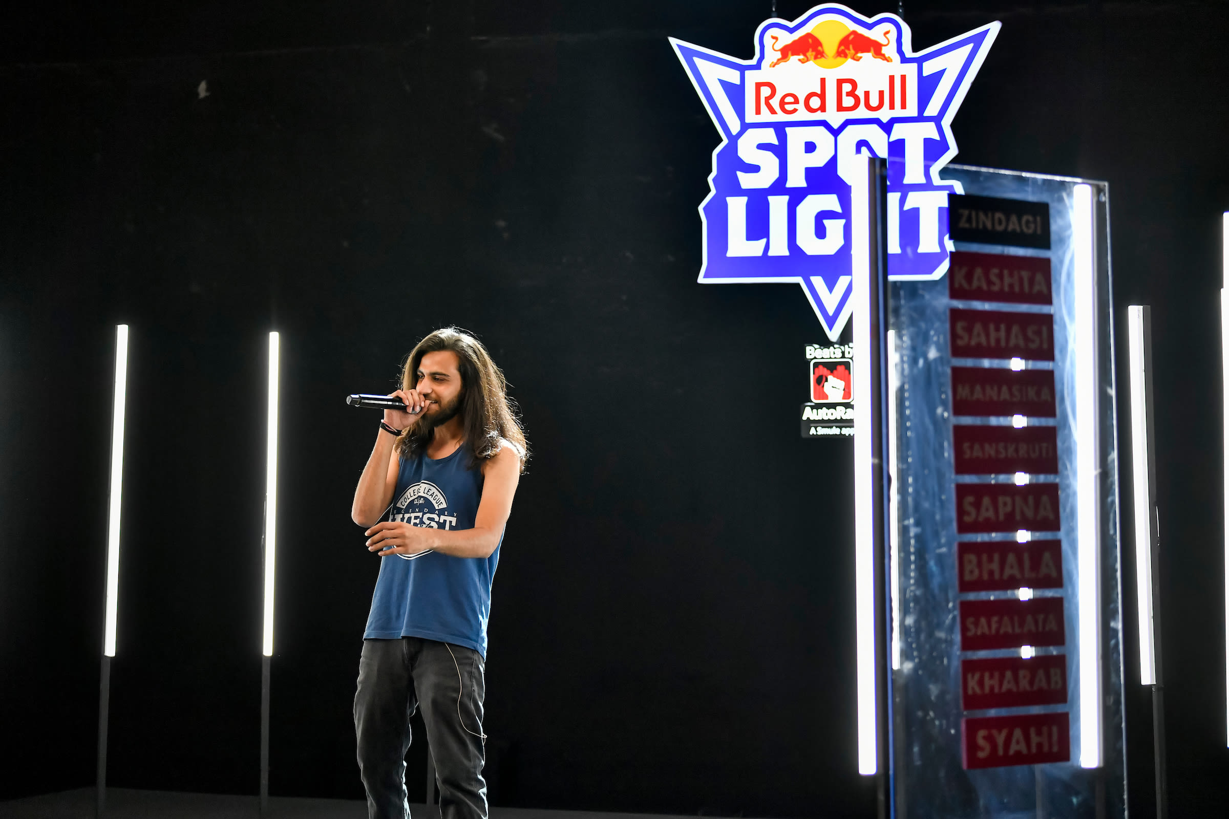 The eight rappers spent several days in Mumbai, attending a series of workshops, mentor sessions, one-on-one advice booths, performances, freestyle and battle rap face-offs, and more. The eight young rappers then participated in a finale where they each performed one song in an attempt to be crowned the winner of Red Bull Spotlight.