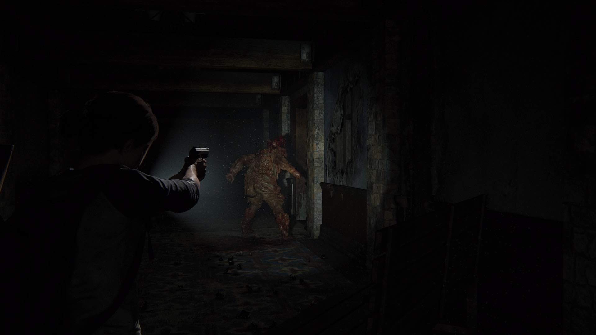 The first enemy you meet is actually during one of the game’s many flashbacks. Playing as a young Ellie and assisted by Joel, you need to make your way through a hotel. After clearing it of some reasonably easy enemies, you’ll be ambushed by a Bloater as you squeeze your way through a tight corridor. Despite being the weakest boss in the game, because young Ellie has a far less varied arsenal, that point on bullet conservation becomes even more critical here.
