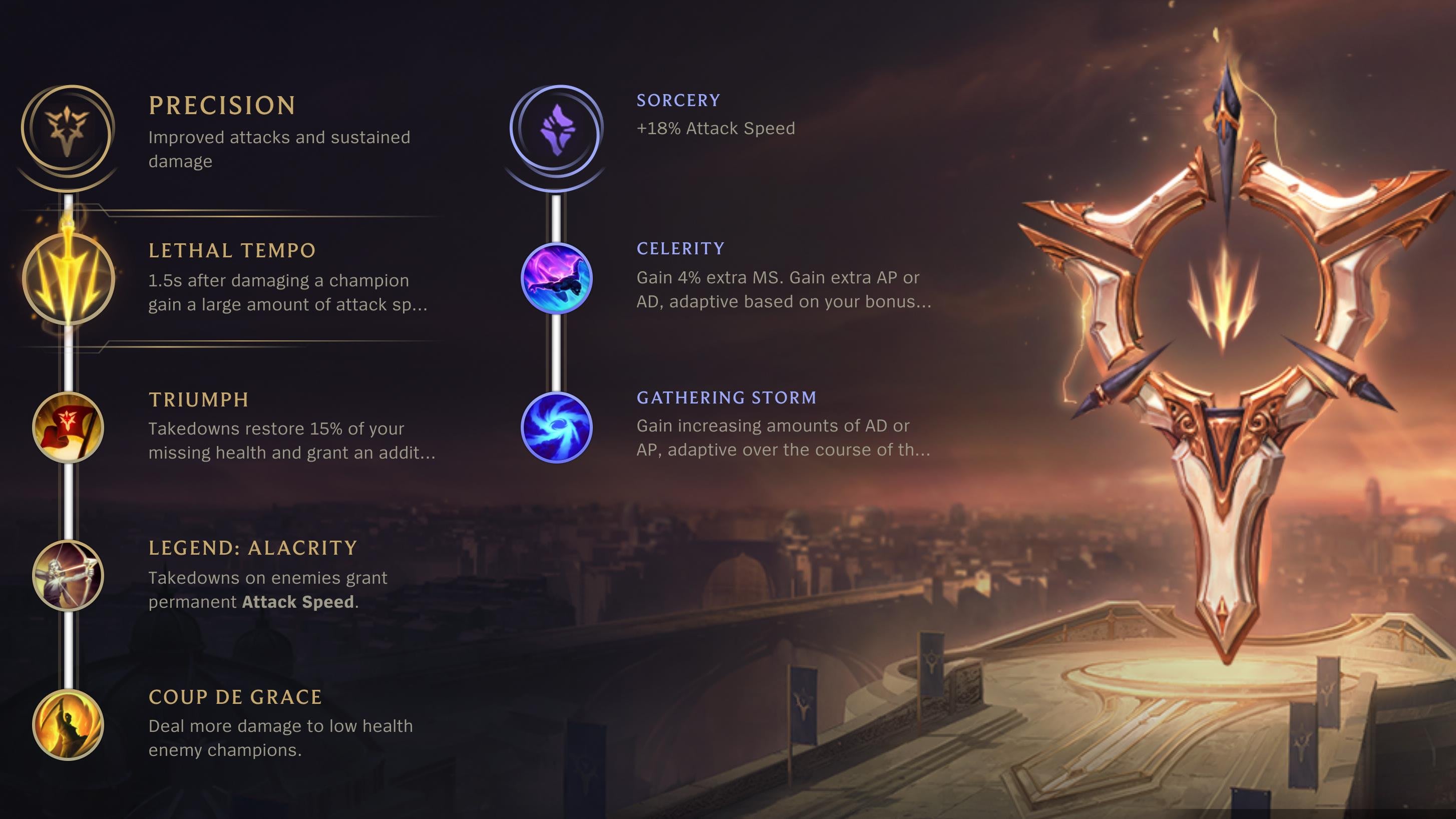 Often Sorcery will be the second tree to build, with the passive increase of MS and AD throughout the game.