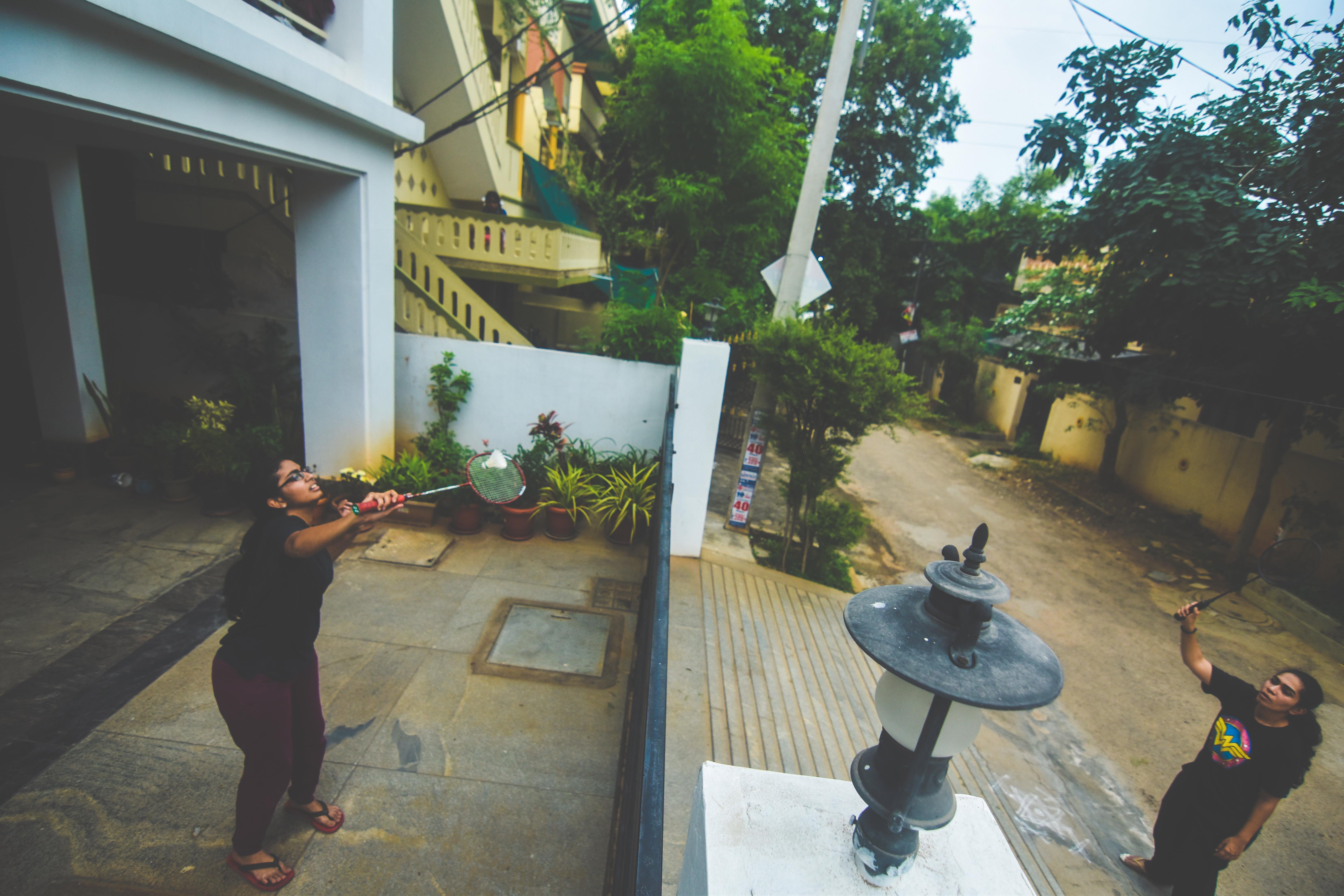"अक्का!" एक युवा लड़की ने अपनी बड़ी बहन को कहा जब भी शटलकॉक लेने के लिए उसे दूर जाना पड़ता था.