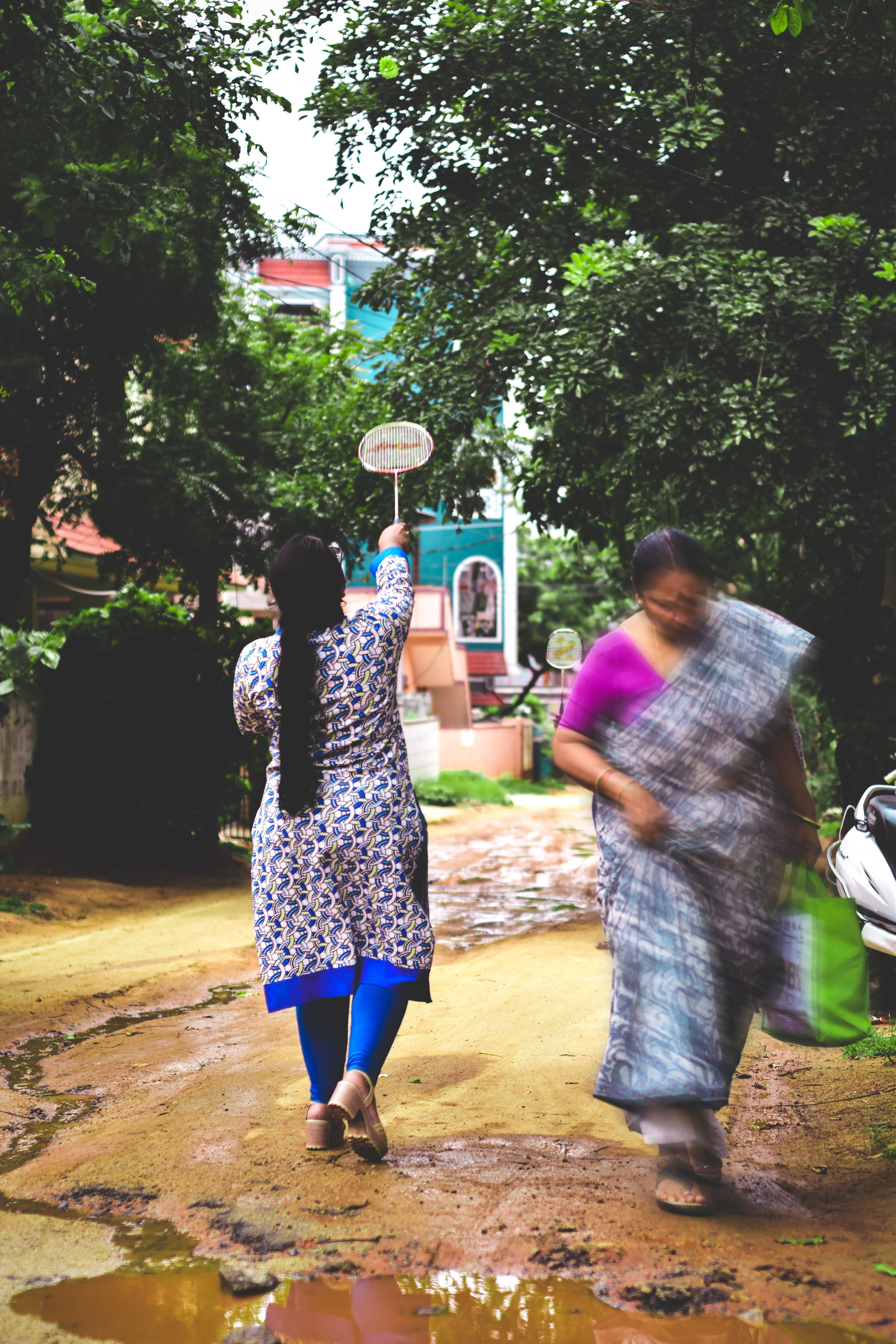 "अरे, क्या तो भी करी?" बड़ी बहन, फातिमा, जवाब में डांटती है जब छोटी बहन पानी के गड्ढे से शटल को टकराती है.