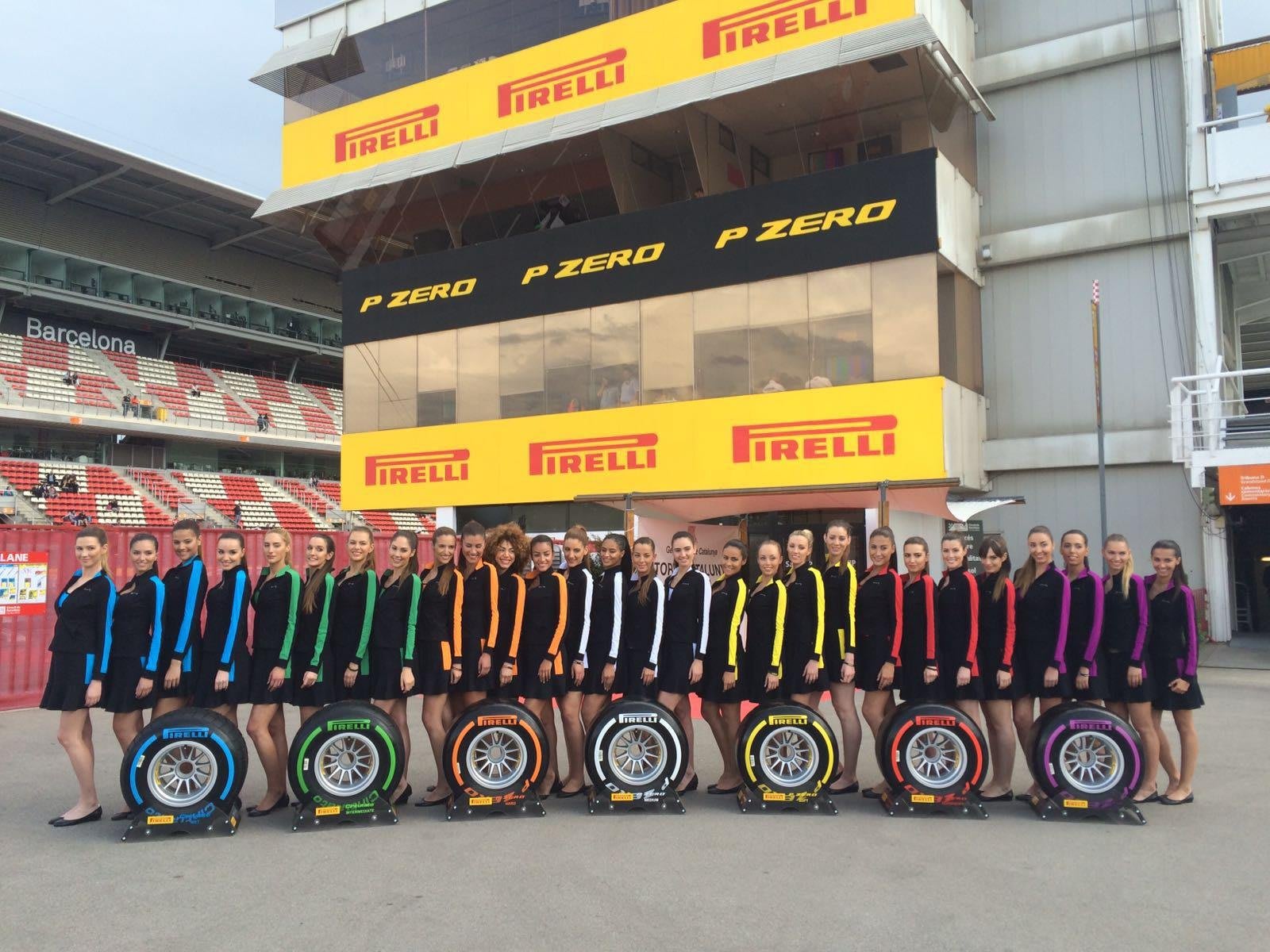 Spanish GP title sponsors Pirelliturned the grid girls from the Spanish Grand Prix into models to show off the range of P-Zero tyres available to the F1 teams through the season.