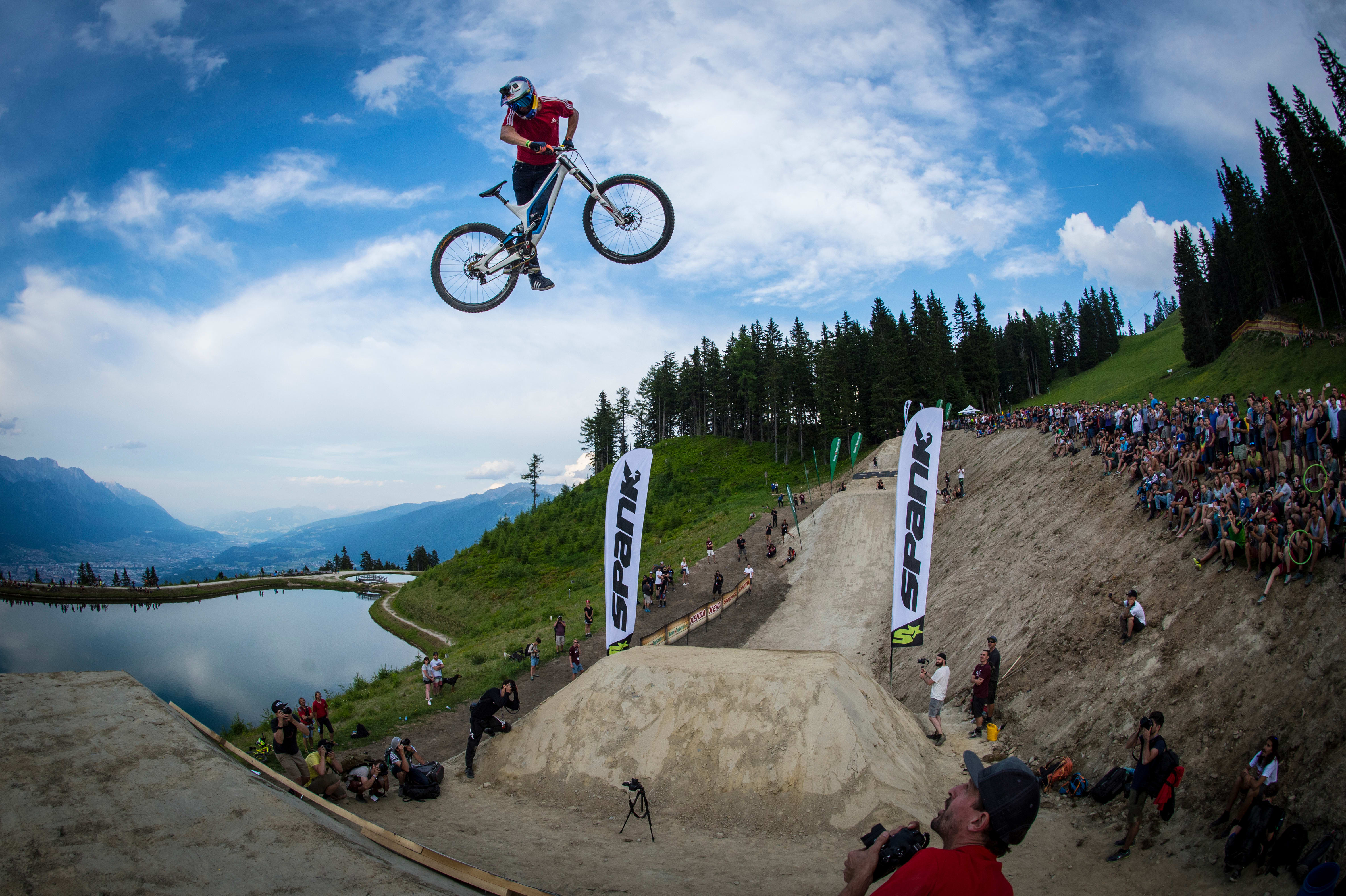 Rogatkin with his signature Cash Roll at Crankworx Innsbruck 2017
