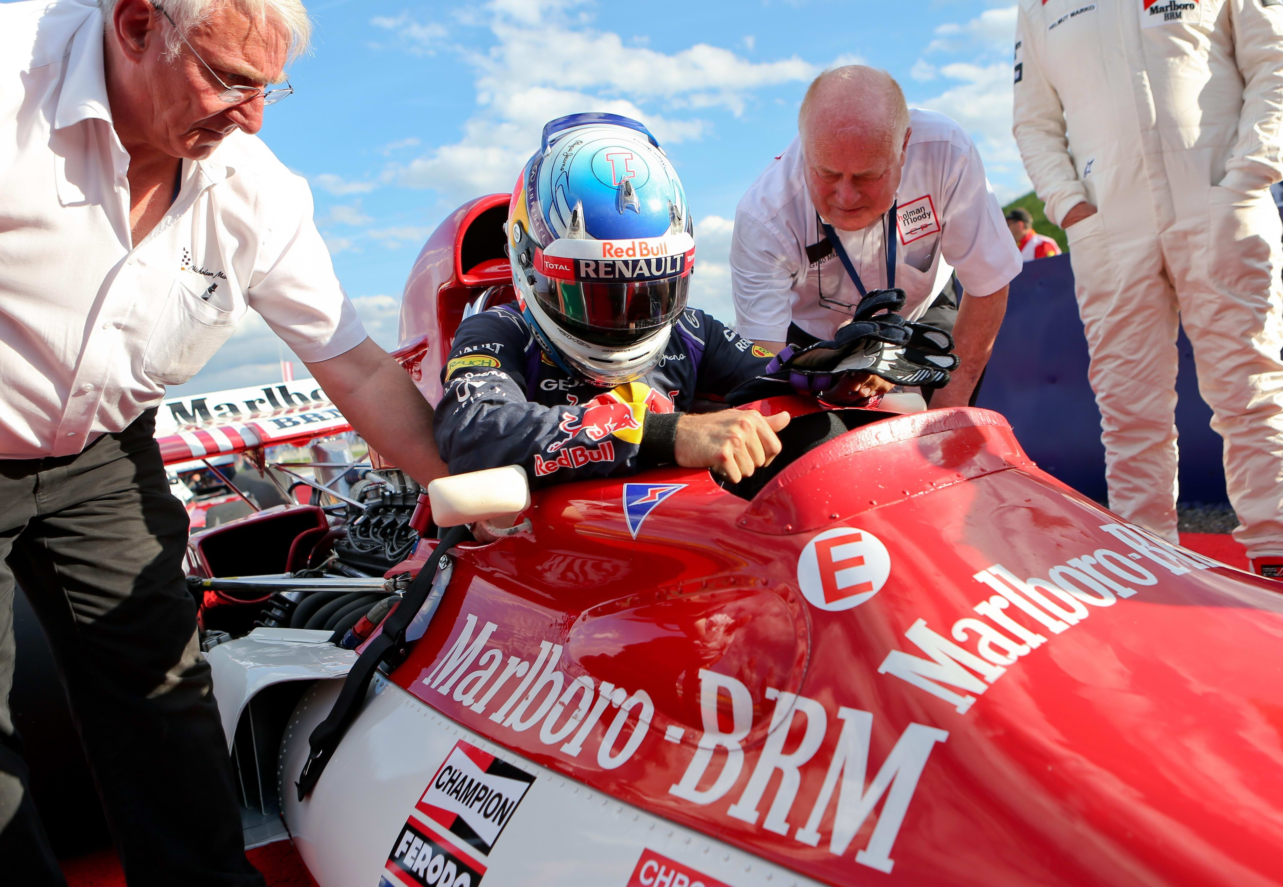 Vettel also jumped into the cockpit of his advisor Helmut Marko’s BRM and fired up the V12 engine for a lap of the track.