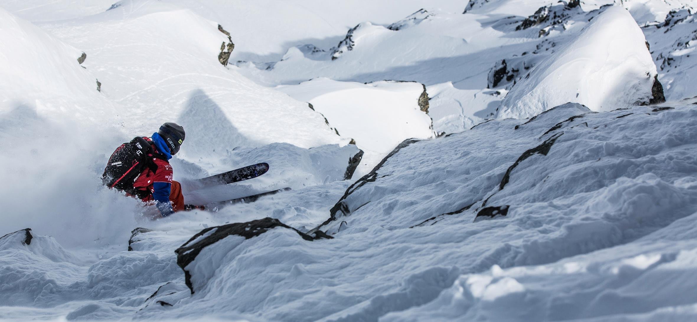 Ruby trusted his mountaineering skills and knew he could billy-goat his way down, but he didn’t know that the screws of his binding would come out of his board, catapulting him down 120m with accelerating speed and creating a momentum that ripped not only his board but also his boots from his feet during his fall. He cleared four 20m rock bands before smashing at last onto the flatter outrun in bad shape. Several face and knee surgeries later, Ruby came back, working for years on the Freeride World Tour as a key member of the safety team.