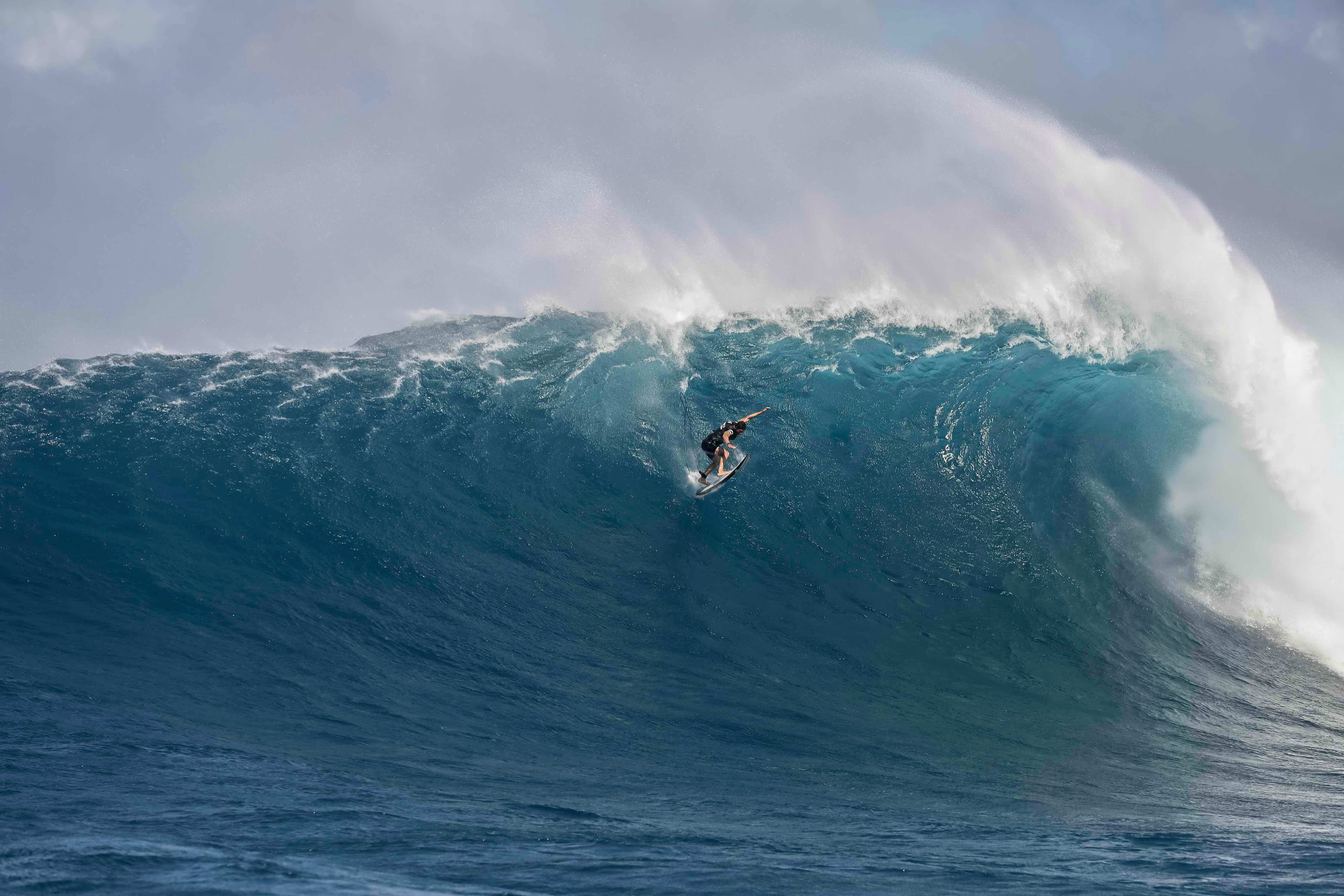 Kai Lenny stands strong at the bottom of a Jaws beast