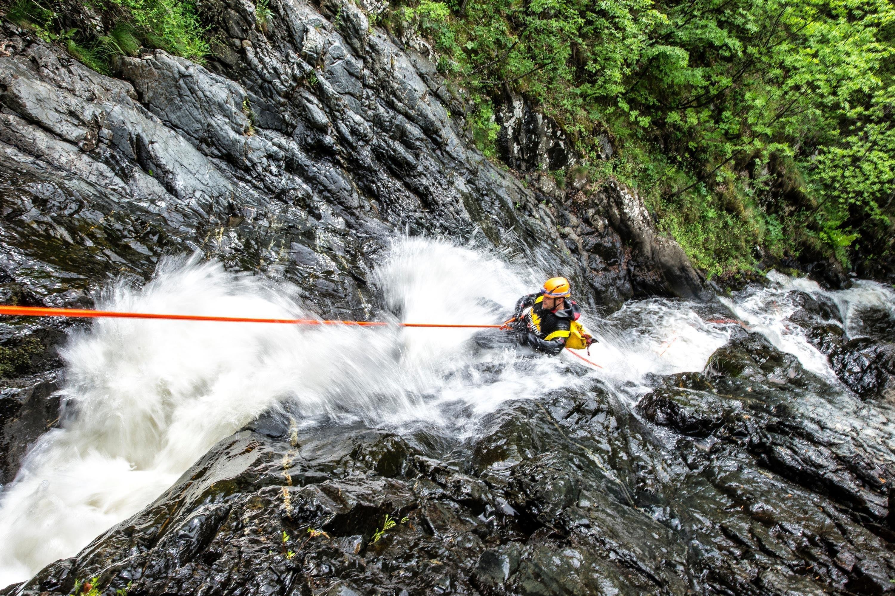 "It’s basically the descent of a river system or a gorge using various techniques and methods. Quite often we'll abseil or rappel down waterfalls, sometimes we can jump, sometimes the canyon forms natural flumes and you can slide down. There’s also a lot of swimming, walking and climbing. It’s all of that stuff thrown together."