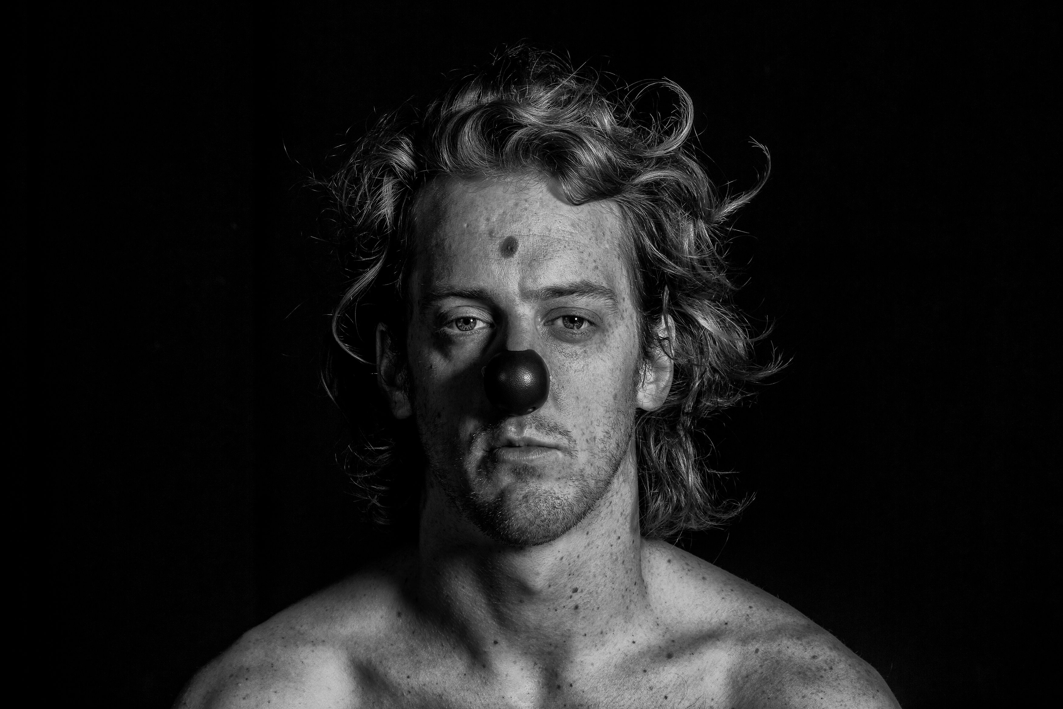 The listener below, a wiry, scraggly haired man, sat topless on a seagrass chair observing himself in an old-world, gilt-edged theatre mirror, of which only two of the 10 bulbs fitted still provided any illumination. His neutral expression was both complemented and contradicted by the vintage leather clown's nose that he wore.