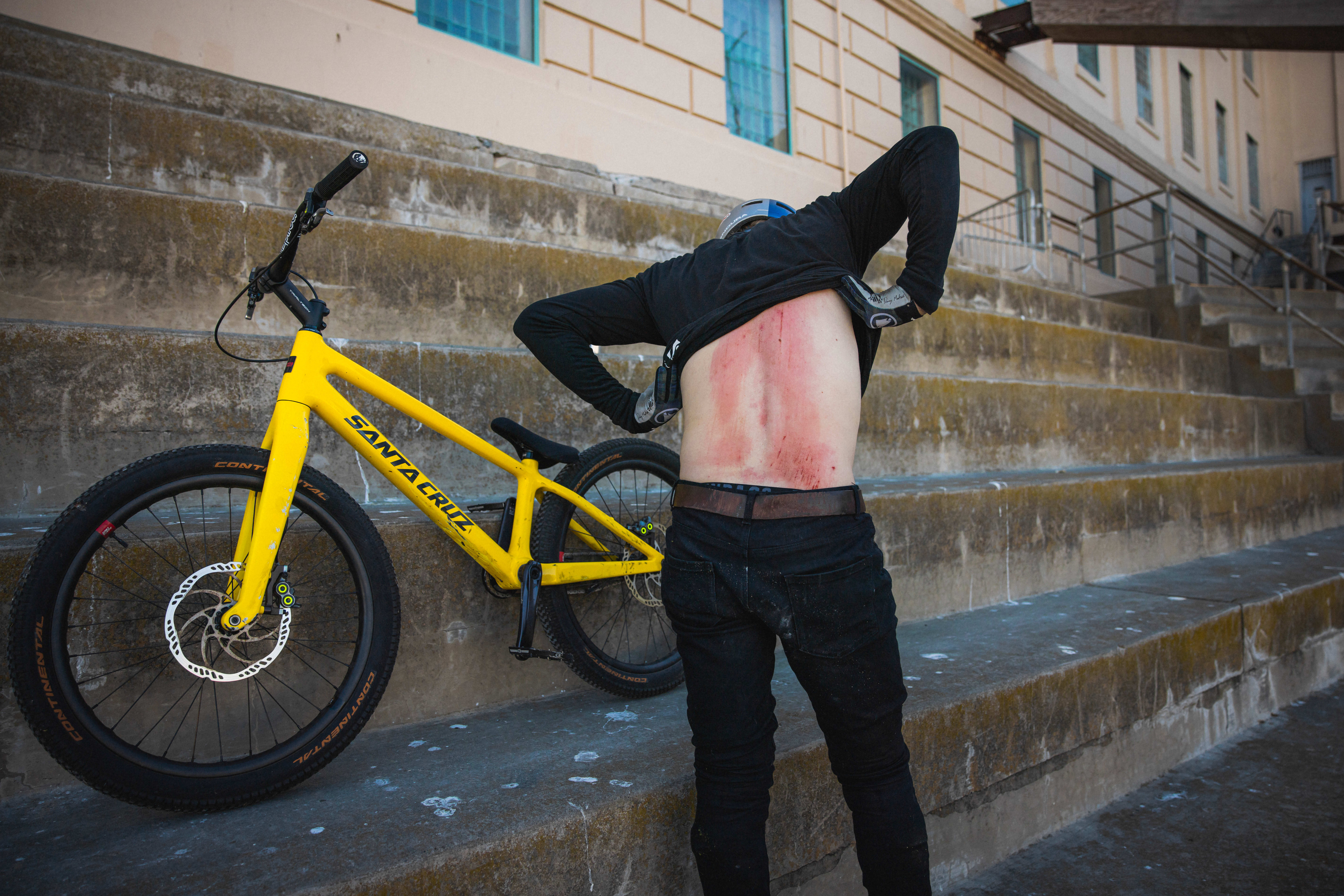 It was a scary one to try because if you miss the bump when you’re going for it, you basically front flip onto your head. Alternatively, if you hit it too hard, then your feet come off the pedals and you land on your back.