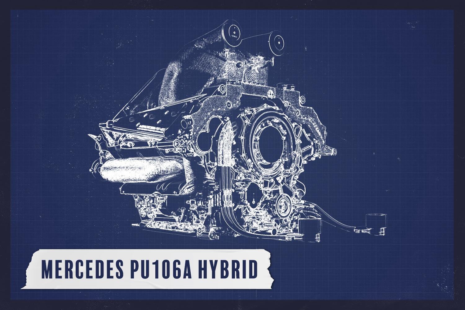 90° turbocharged, direct injection 1.6l V6 hybrid featuring MGU-K and MGU-H