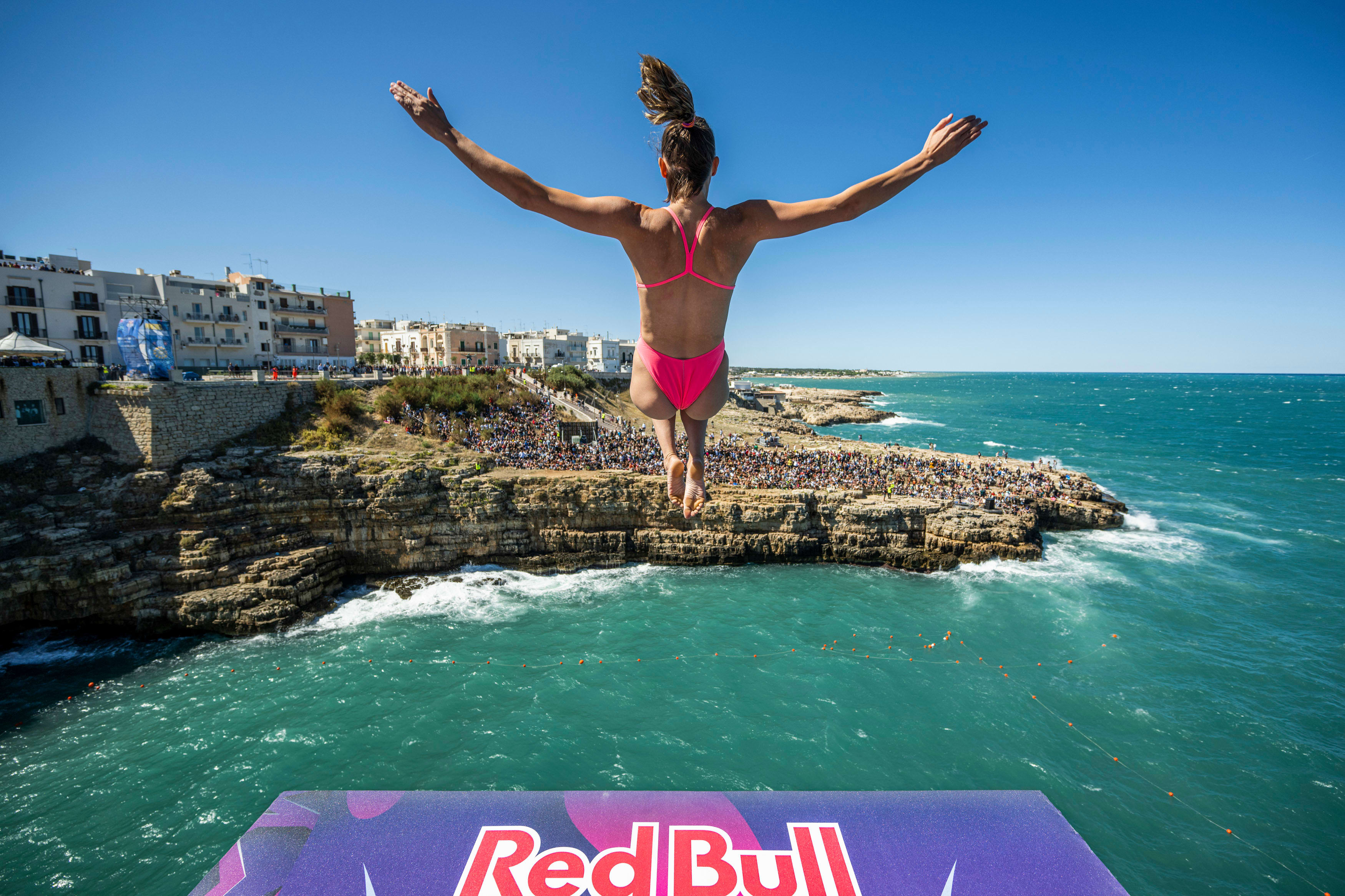 The third stop on the 2024 calendar will mark the eleventh time that Polignano a Mare has featured as an event for the Red Bull Cliff Diving World Series since 2009. The stunning natural cliff-top location with an amphitheatre-like setting, the azure Adriatic Sea below and the unpredictable coastal conditions capture the essence of the sport of cliff diving. So for many of the competitors and fans alike, Polignano a Mare is simply the heart and home of the Red Bull Cliff Diving World Series.