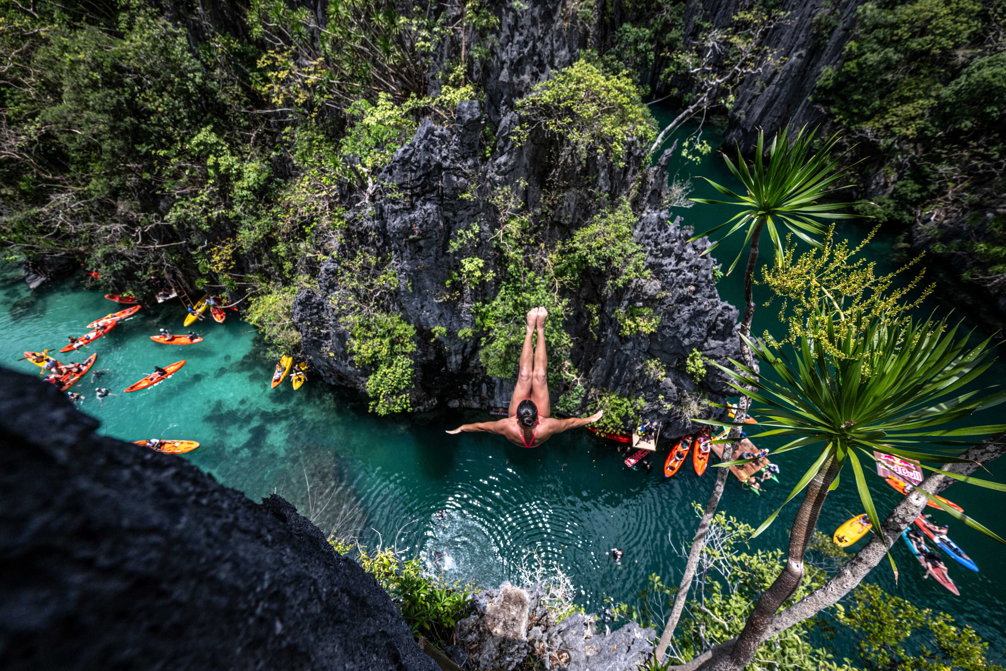 Day 2 saw a switch-up as the divers performed their Round 2 dives in the remote, hidden piece of paradise in the Small Lagoon. Tucked between towering limestone cliffs and accessible only by kayak or a narrow crevice in the rock, the Small Lagoon is one of El Nido’s most iconic natural wonders, with the enclosed arena adding a sense of rugged drama to every dive.