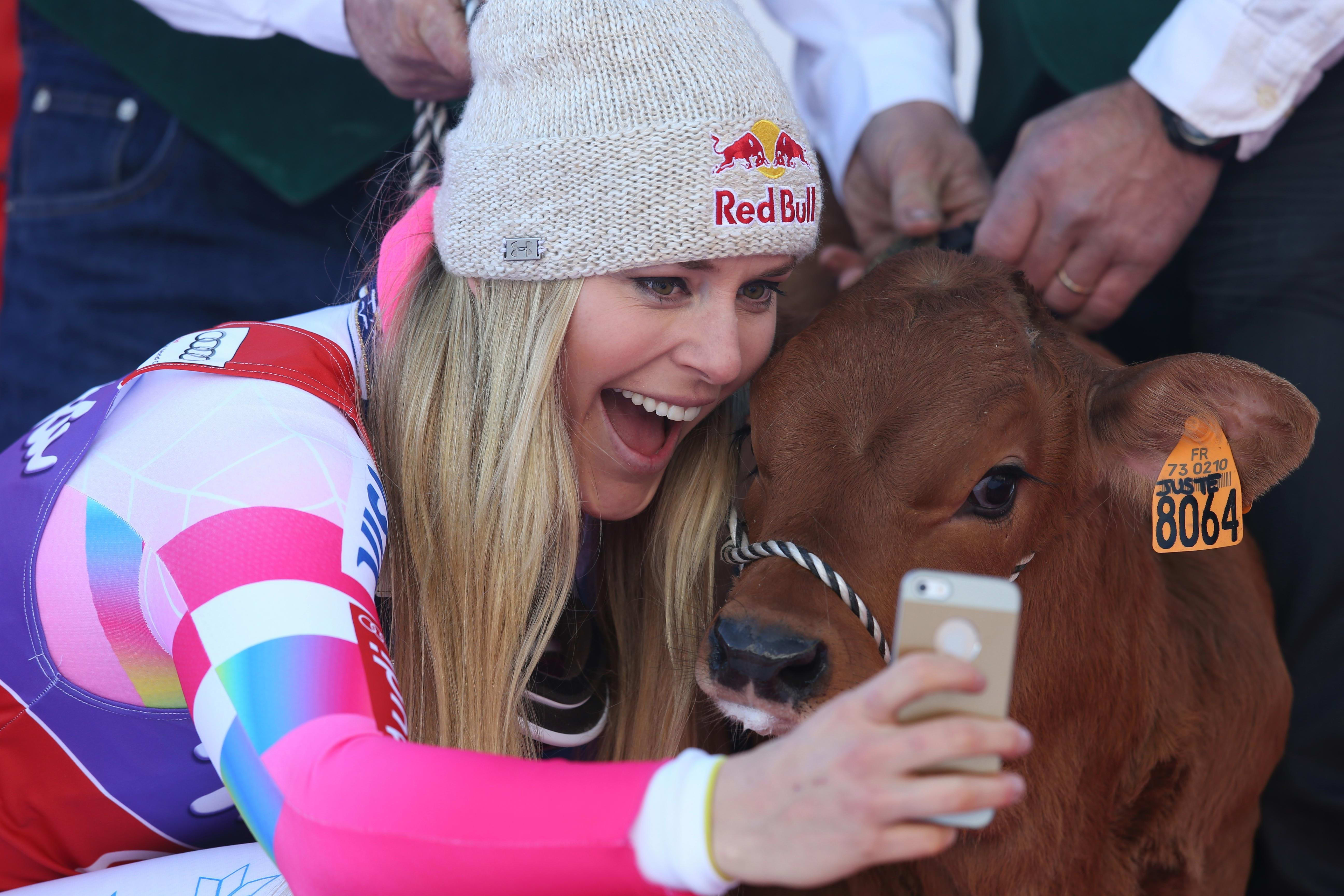 It first happened in 2005, when Lindsey chose a cow over a check for €5,000 for her win in Val d’Isère, France. She named it Olympe because it was an Olympic season. It then turned out that the cow was pregnant, and soon gave birth to a calf, Sunny. Later Olympe had another calf that Vonn named Karin, after her sister. Then Sunny had two calves, a male and a female, that Vonn named Don and Shirley after her grandparents.