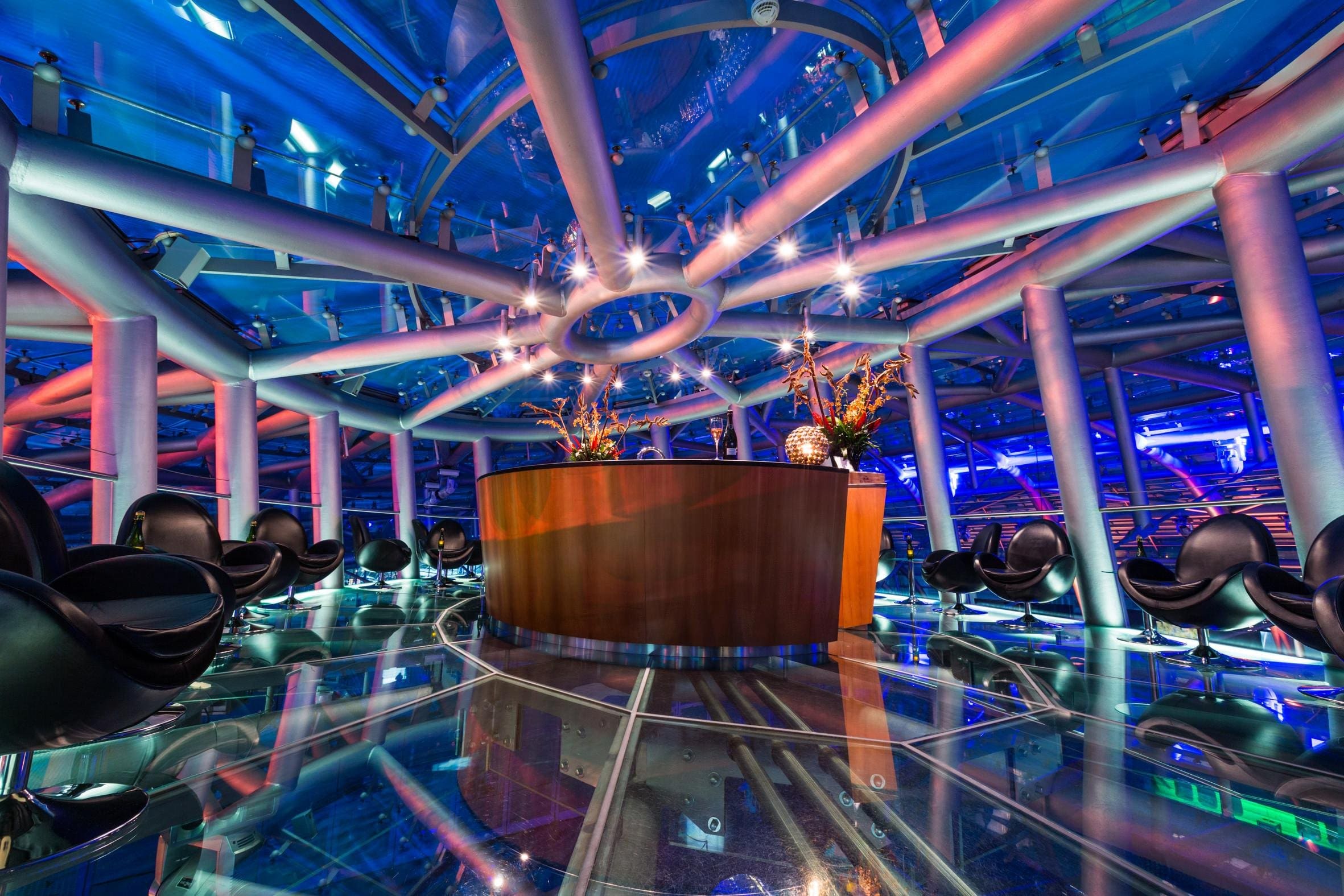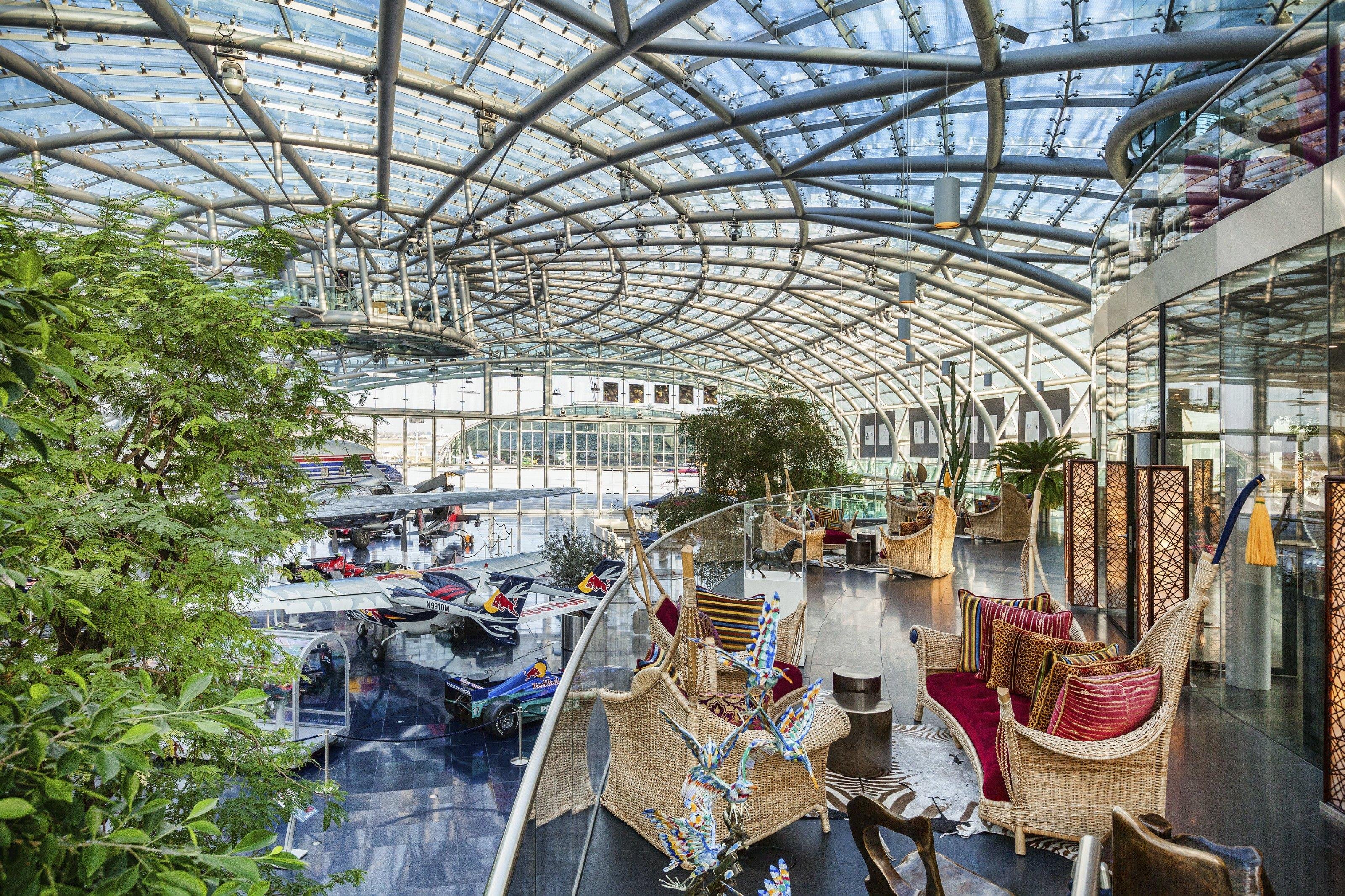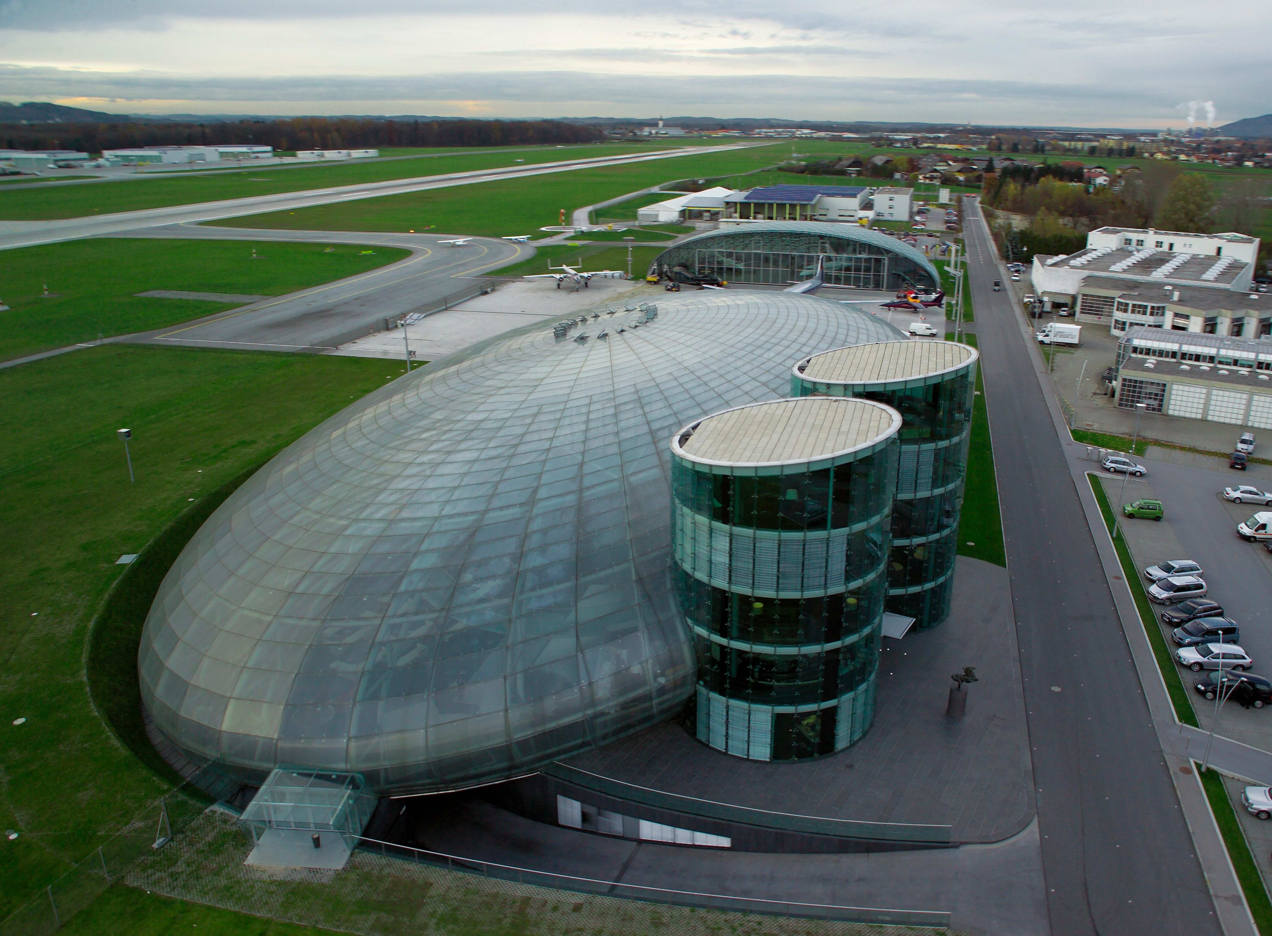 Hangar-7's glass towers house a renowned restaurant, cafe and bars