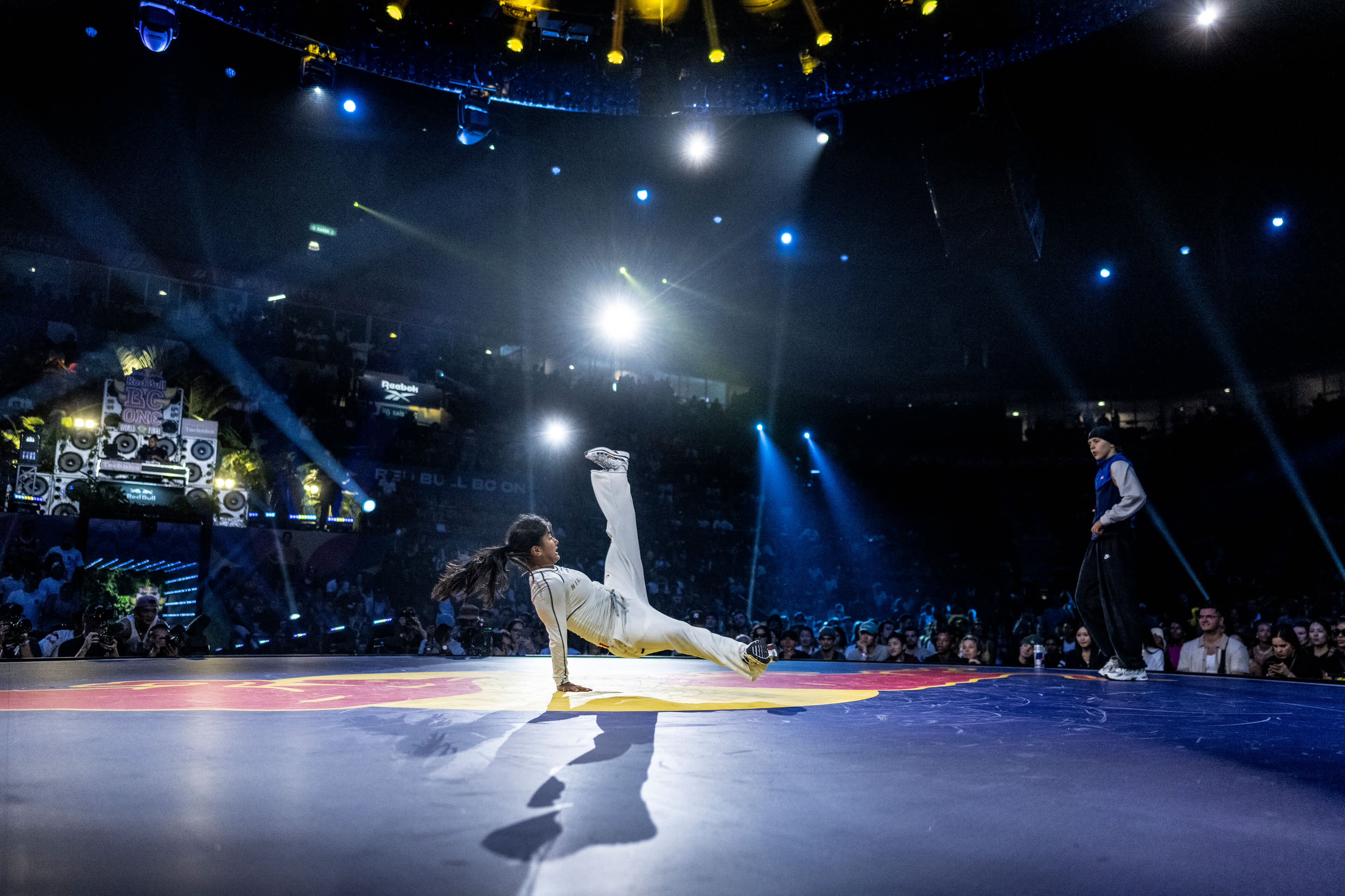 B-Girl India, born in the Netherlands and representing the renowned Hustle Kidz crew, has solidified her place in breaking history as a two-time Red Bull BC One World Champion. Known for her explosive power, creative transitions and undeniable stage presence, India has become a global icon in the breaking world. Her first championship win in 2022 was groundbreaking, and her second in 2024 cements her legacy alongside the other b-girl double champs, Ami and Kastet.