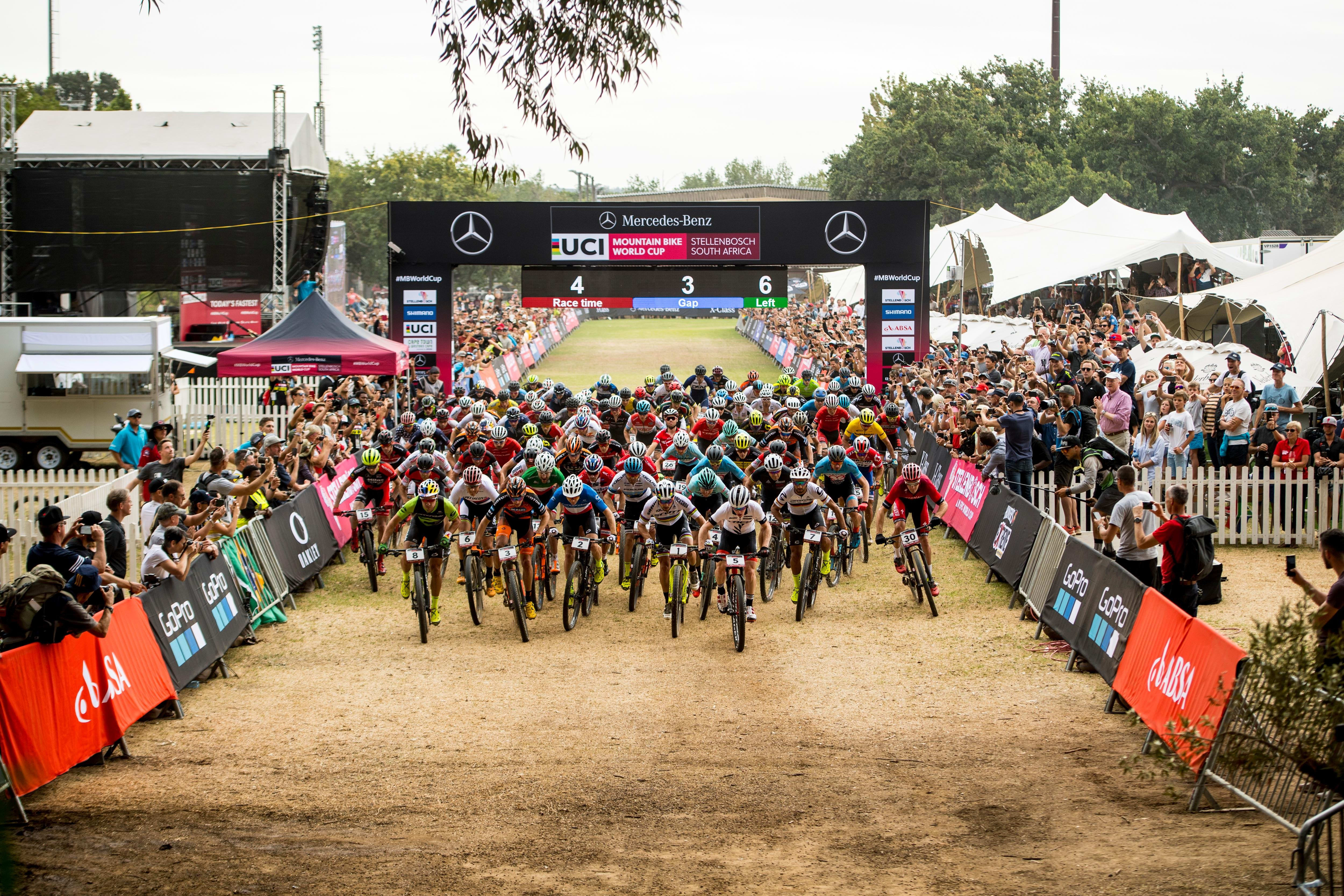 For those who are new to the sport of mountain bike cross-country, seeing a huge bunch of riders set off at the same time – battling it out lap-after-lap, for over an hour – can be slightly confusing. Everyone knows that the first rider to cross the finish line is the winner, but what happens in-between the start and the finish at a Mercedes Benz UCI Cross-Country Mountain Biking World Cup race? What decides the start order and how many laps they're actually meant to do? Read on to learn everything you need to know about the discipline.