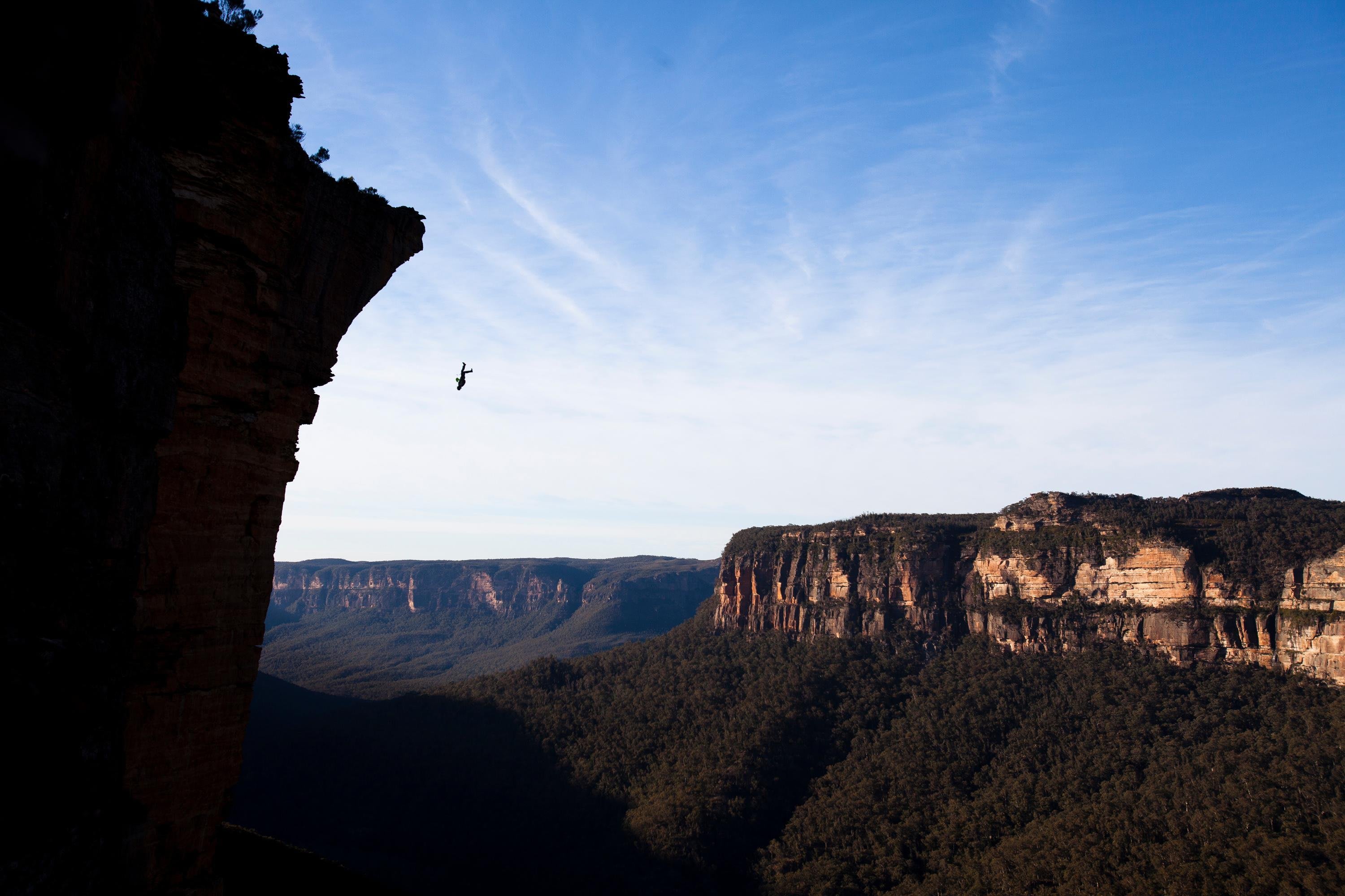 Jim Mitchell prepares to throw his chute in Australia's Blue Mountains.