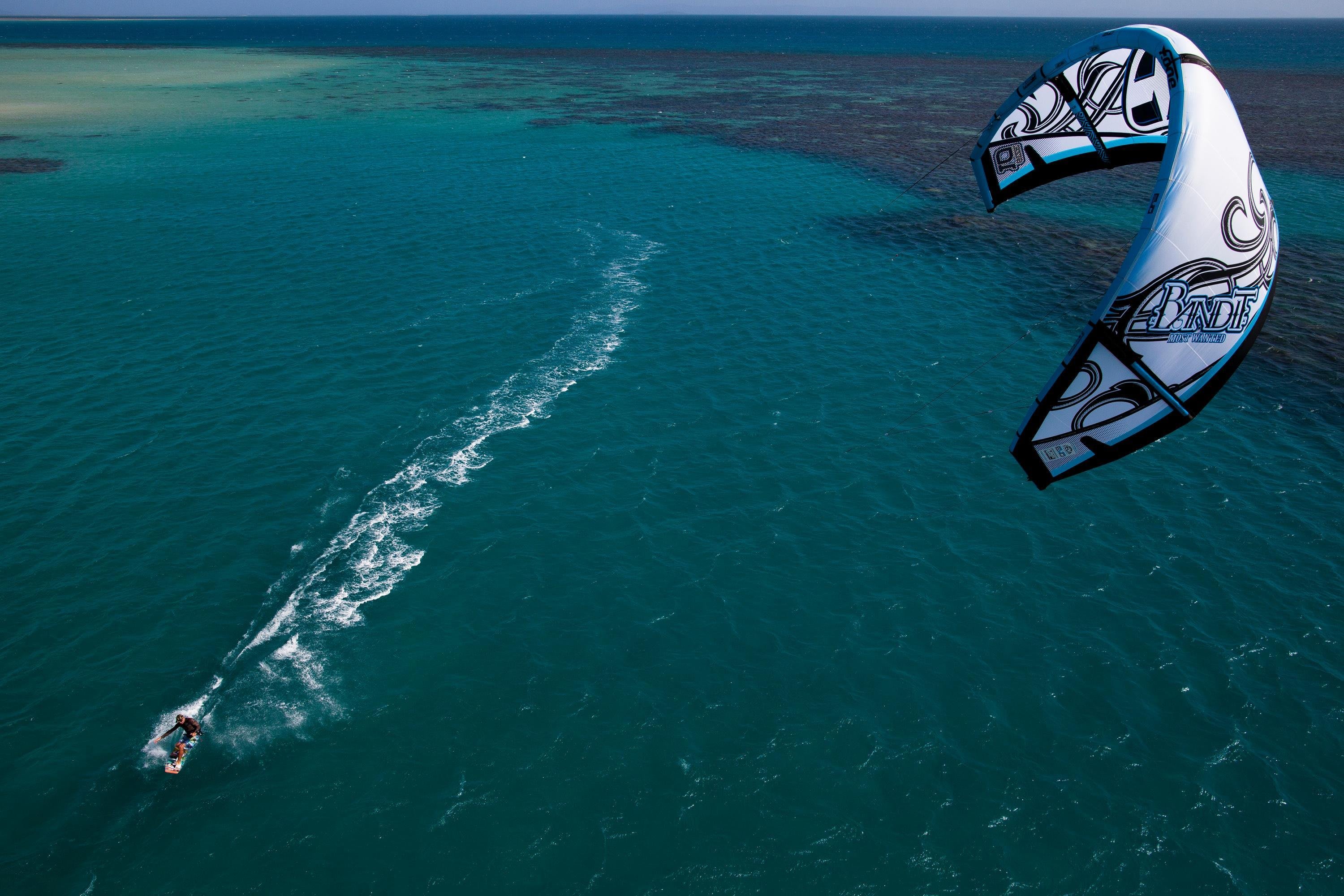 Brett Wright kite surfs off the coast of Eagle Island on the Great Barrier Reef, Australia.