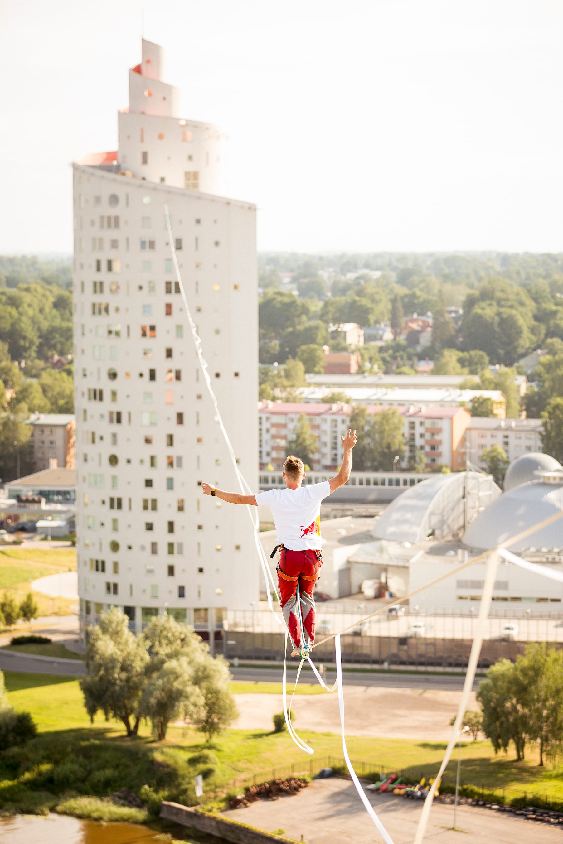Roose was part of an array of athletes showcasing their skills at Red Bull Racing Showrun in the Lithuanian capital. For his part, the Estonian wanted to perform in front of huge crowds on a slackline installed on a long cargo trailer pulled by a truck. What made this difficult was that the truck was moving at the same time he was trying to slackline and perform tricks.