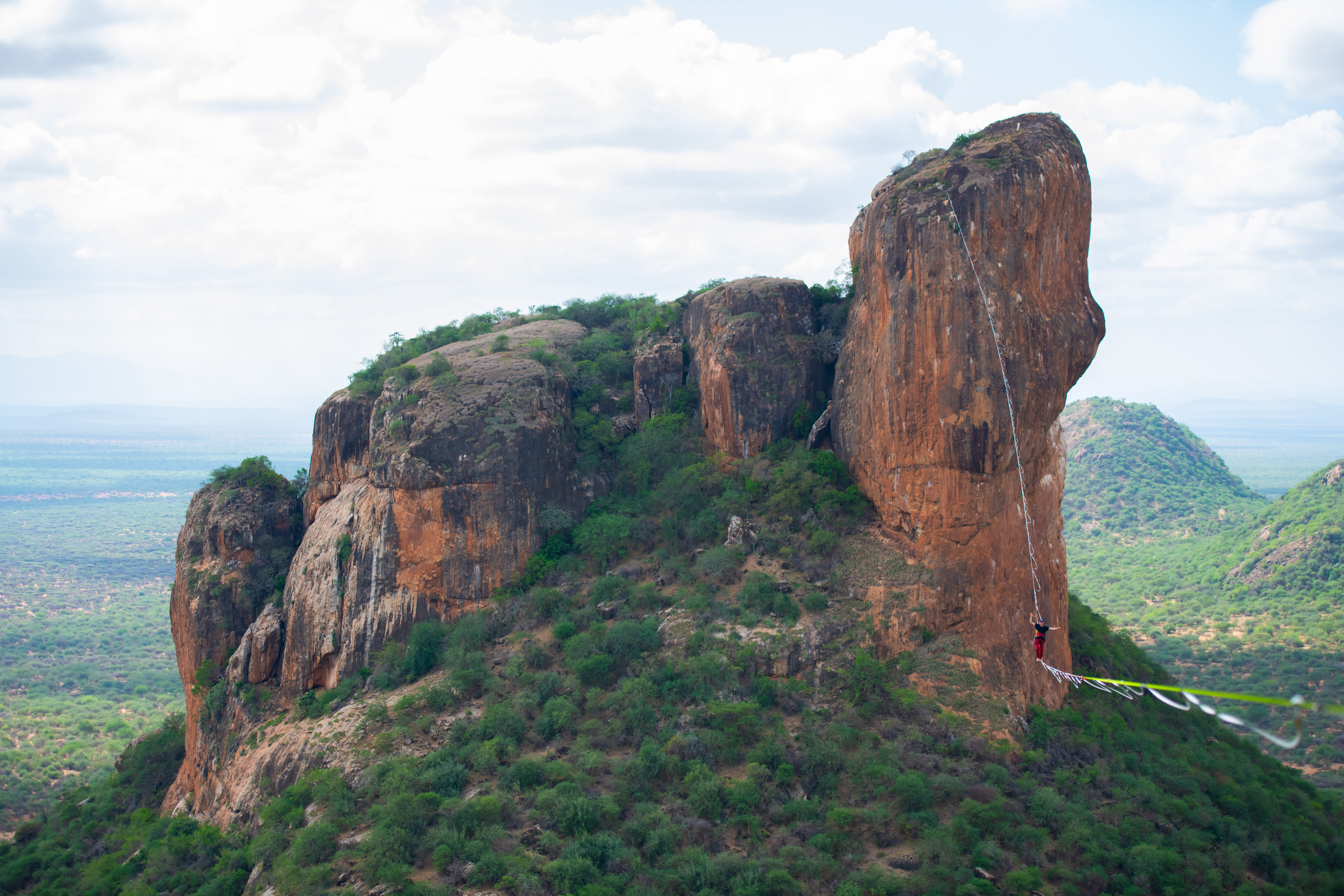 The project – slacklining a 580-metre line between the iconic rock formations known as Nkadorru Murto in Samburu County in Kenya.