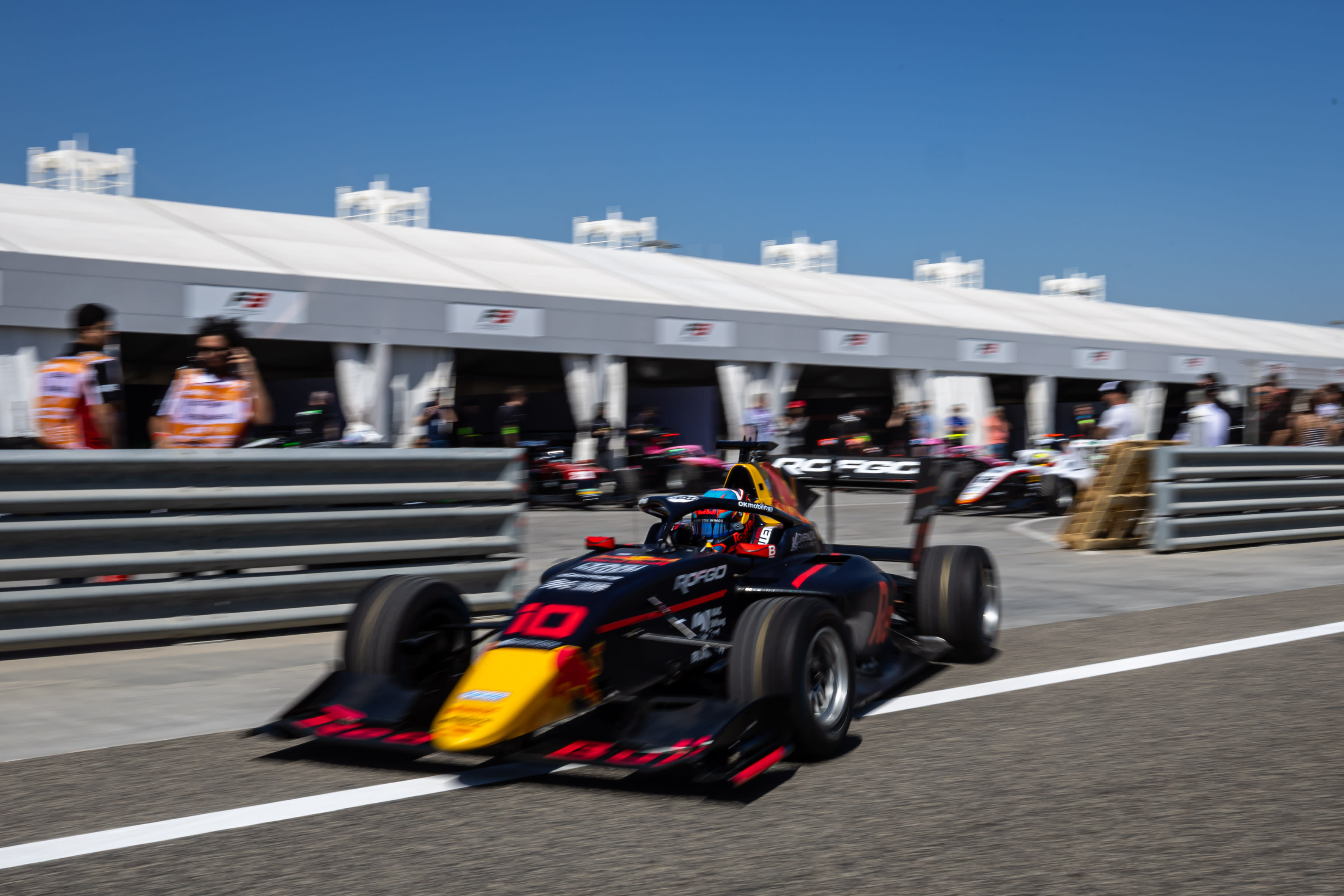 Oliver Goethe leaving the pit of F3 at Sakhir 2024