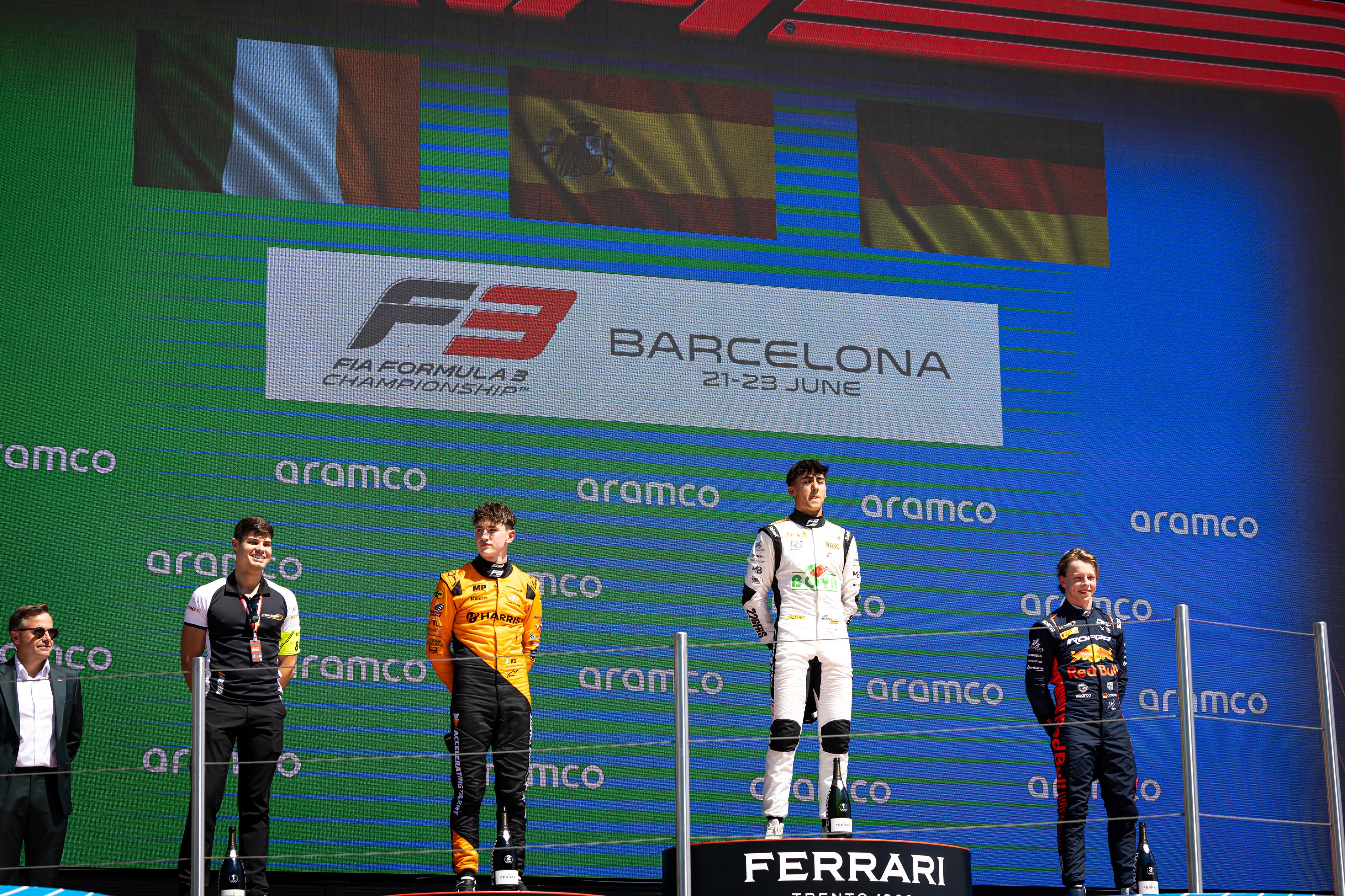 Oliver Goethe on the podium in Barcelona 2024 - Formula 3