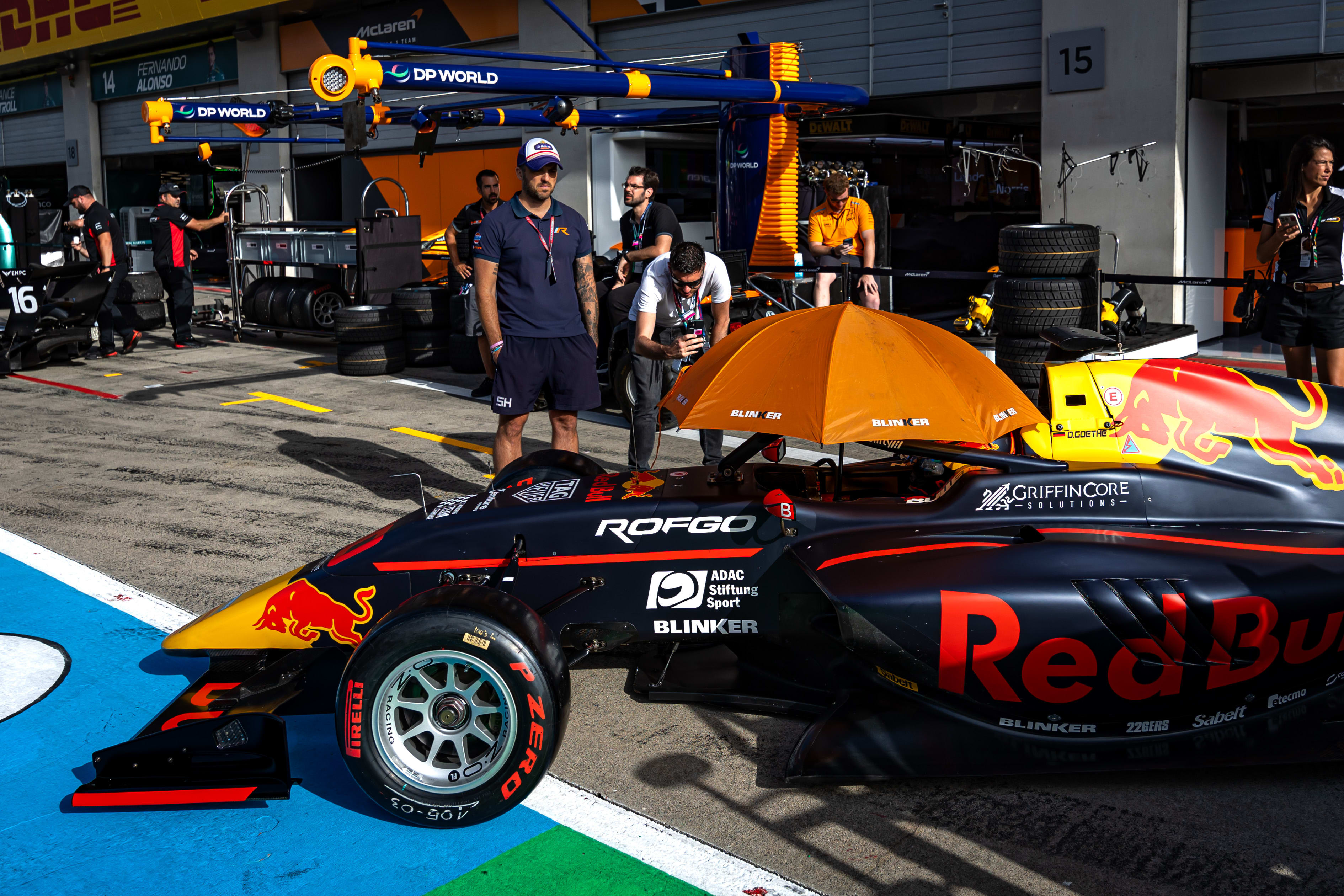 Oliver Goethe in the pit lane of Baku 2025 - Formula 2