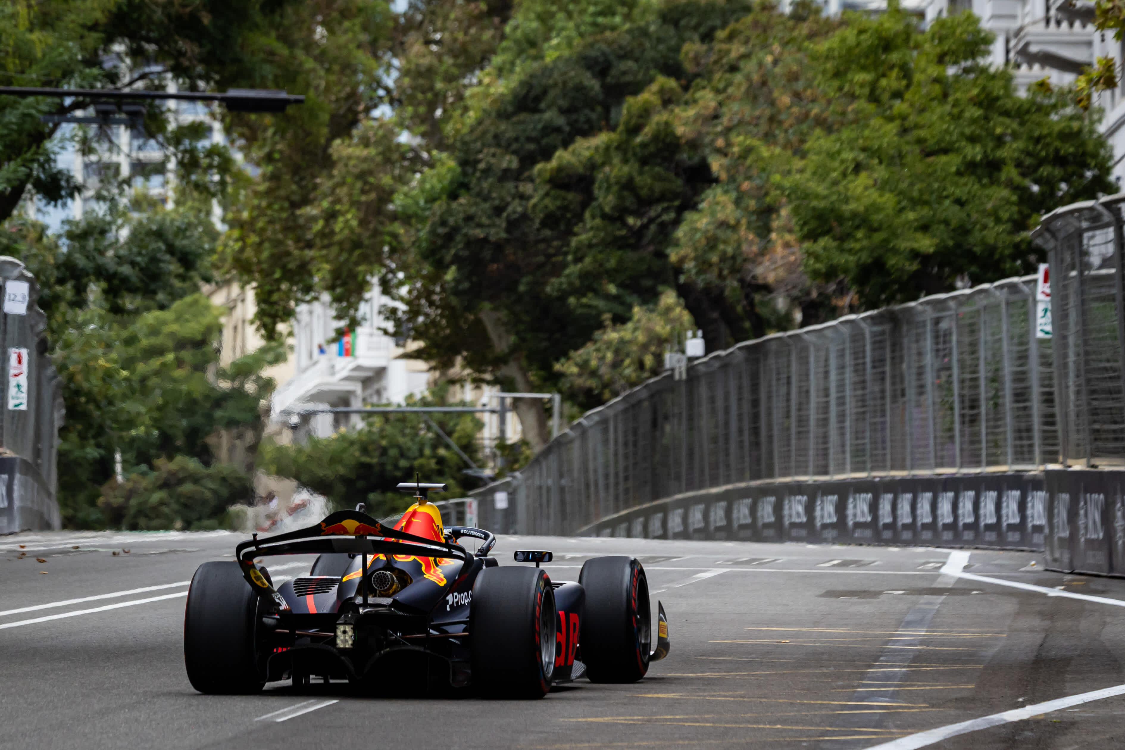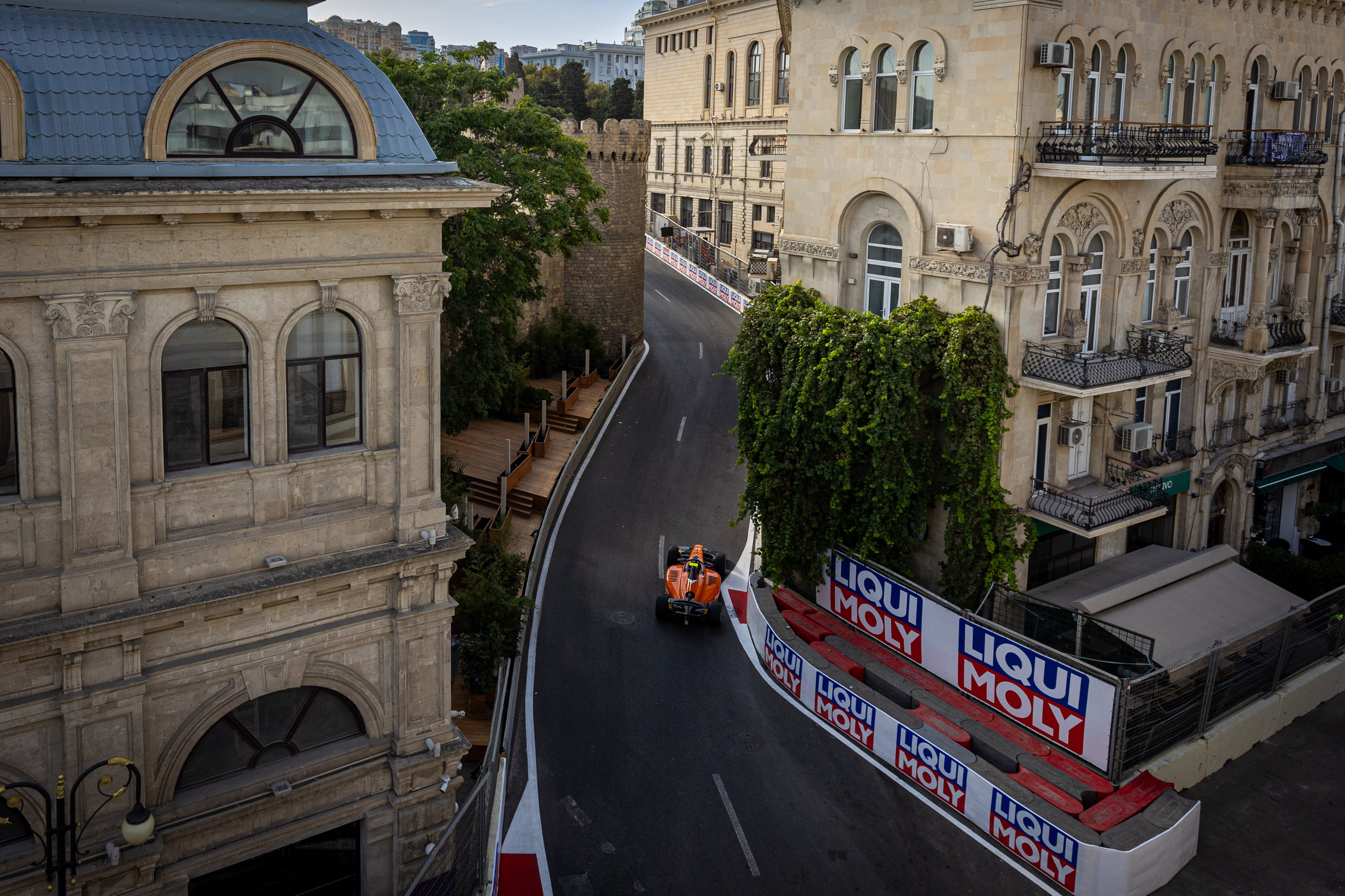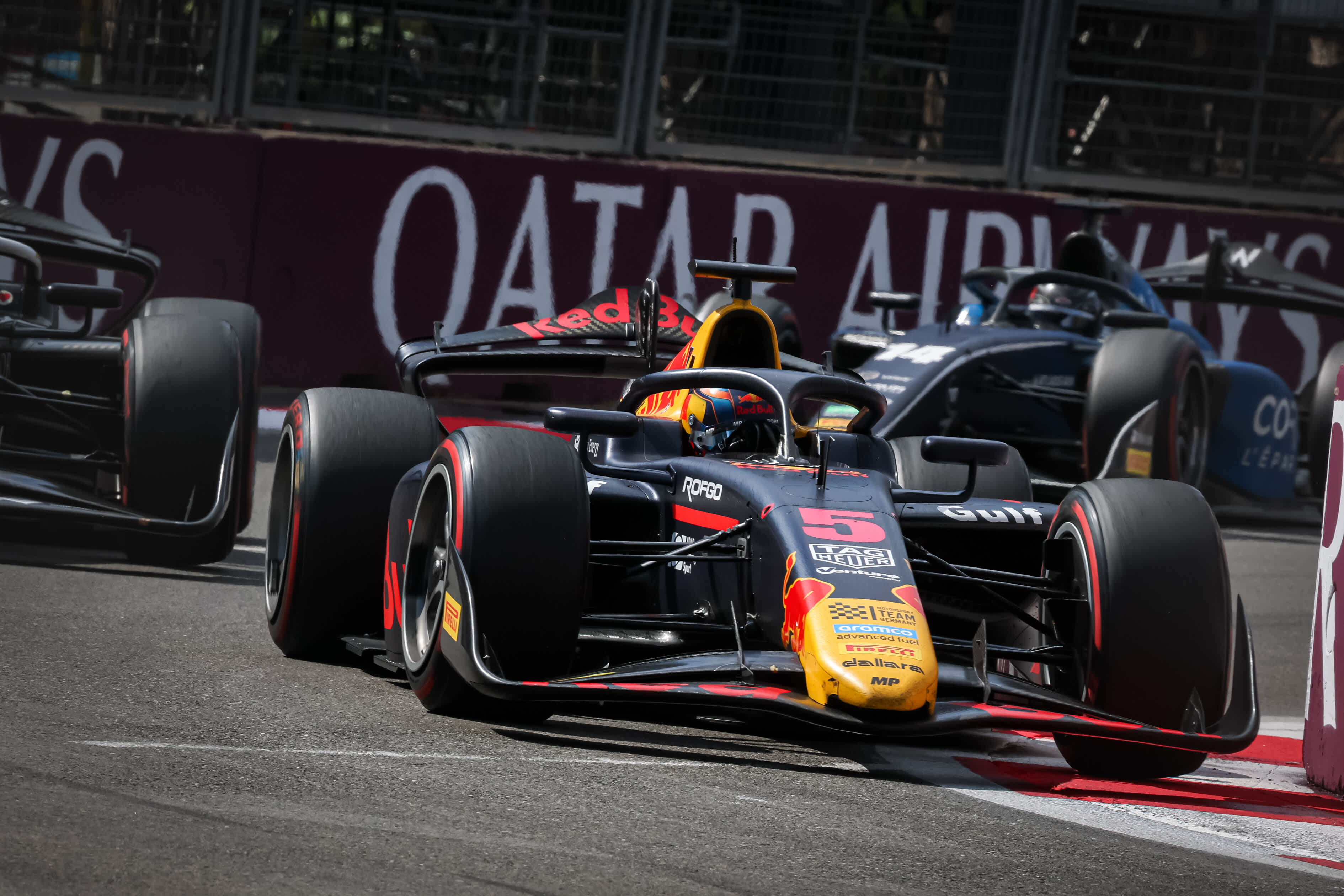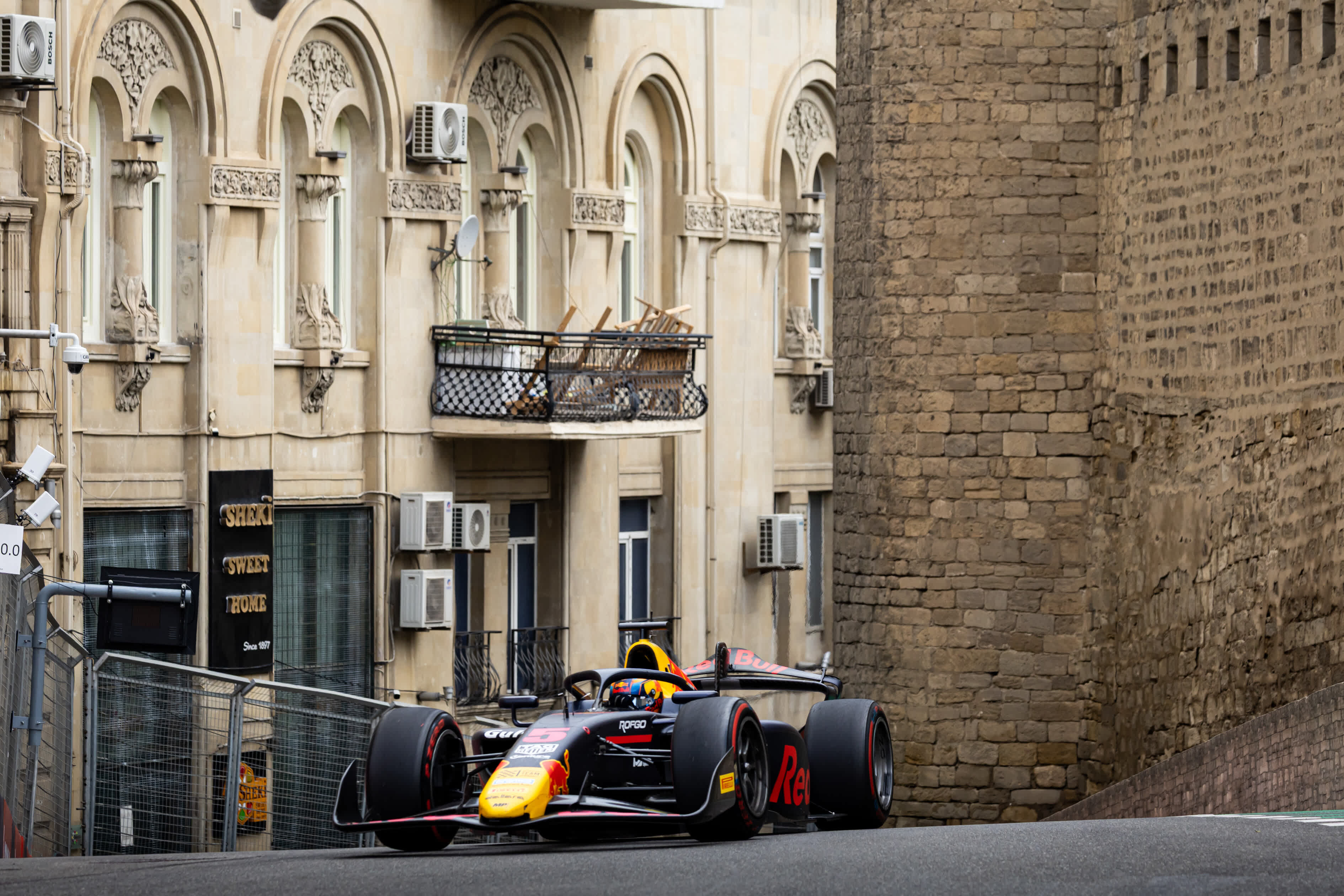Oliver Goethe racing through the streets of Baku 2025 - Formula 2