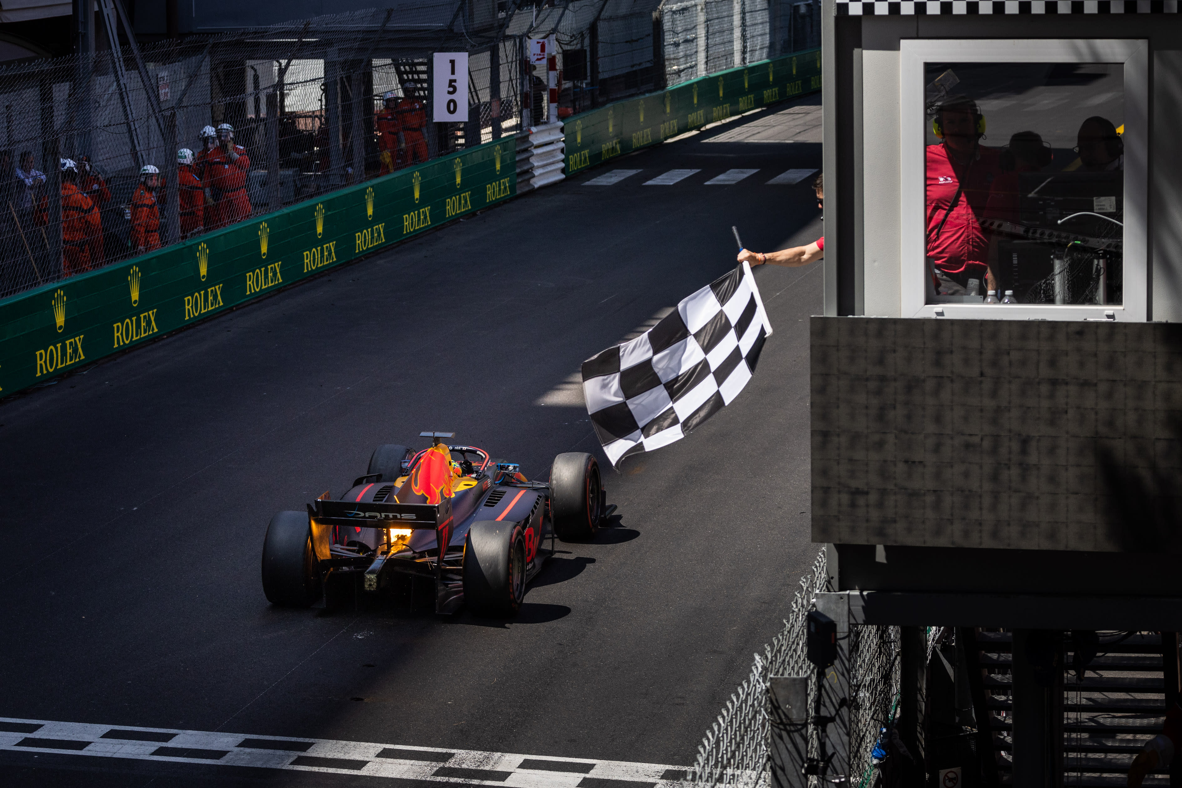 Ayumu Iwasa #11 (Dams) crossing the line for the F2 victory in Monaco 2023