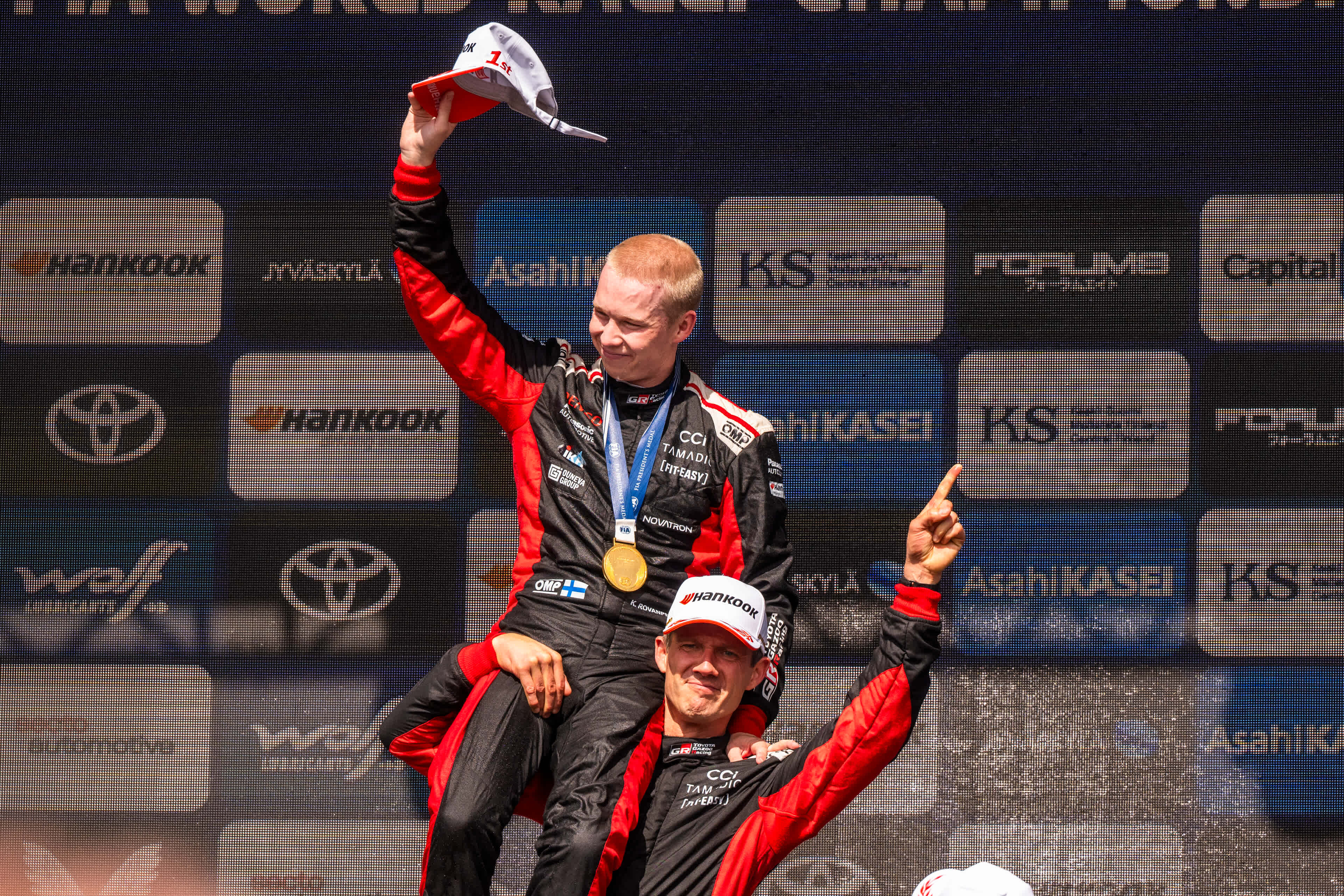 Dream team: Kalle and Jonne celebrate victory with Toyota Gazoo Racing